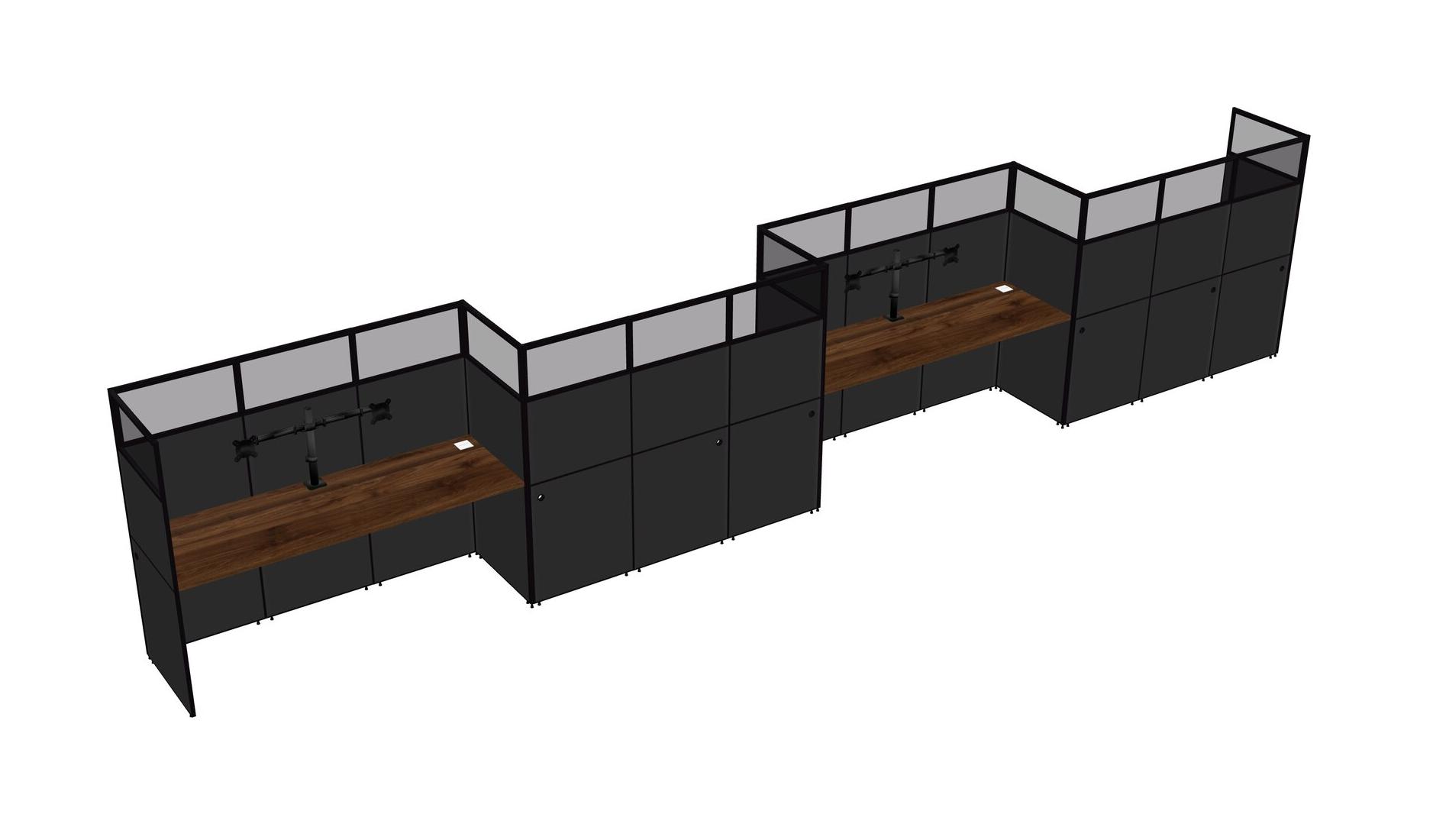 Columbia Walnut Rectangular Cubicle Workstations For 4 - Zigzag Formation
