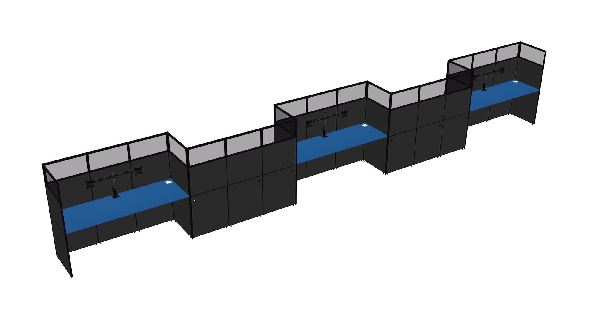 Prism Blue Rectangular Cubicle Workstations For 5 - Zigzag Formation