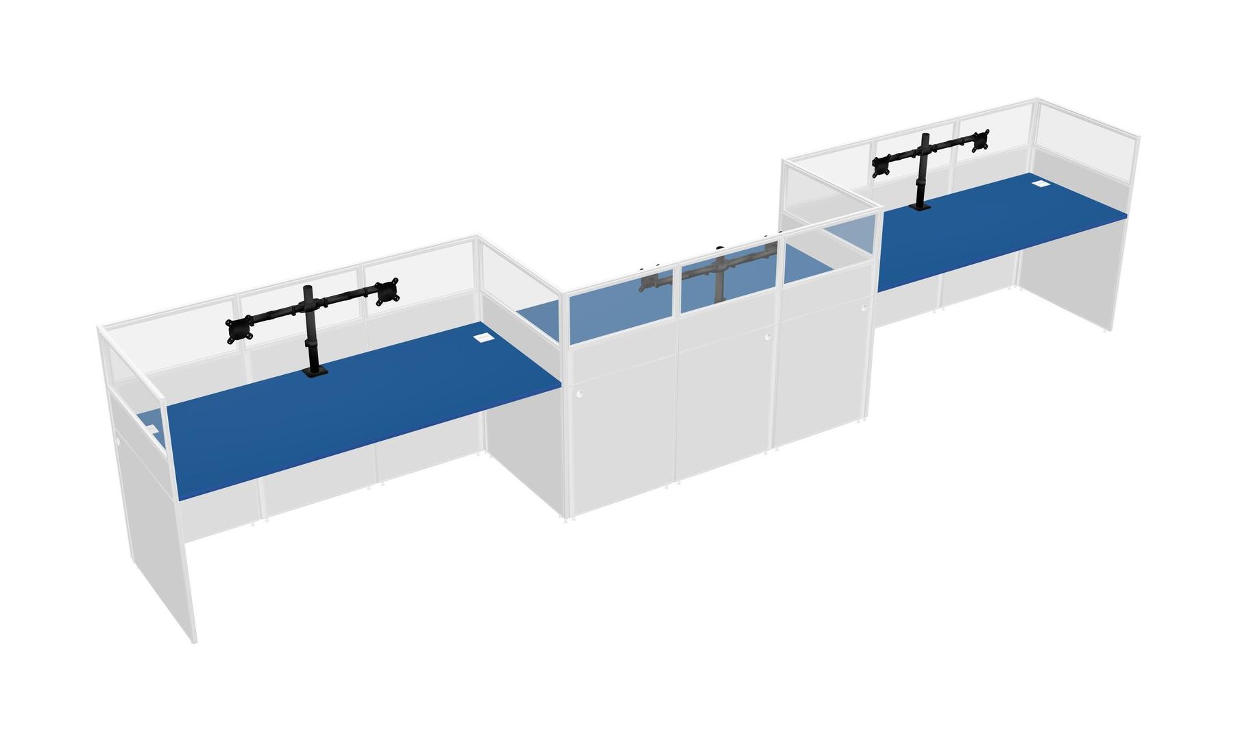 Prism Blue Rectangular Cubicle Workstations For 3 - Zigzag Formation