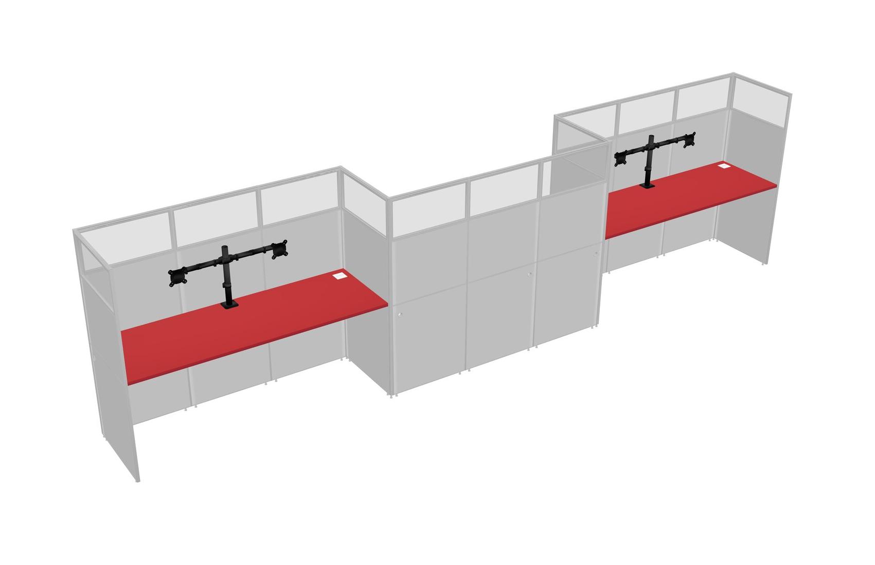 Prism Red Rectangular Cubicle Workstations For 3 - Zigzag Formation