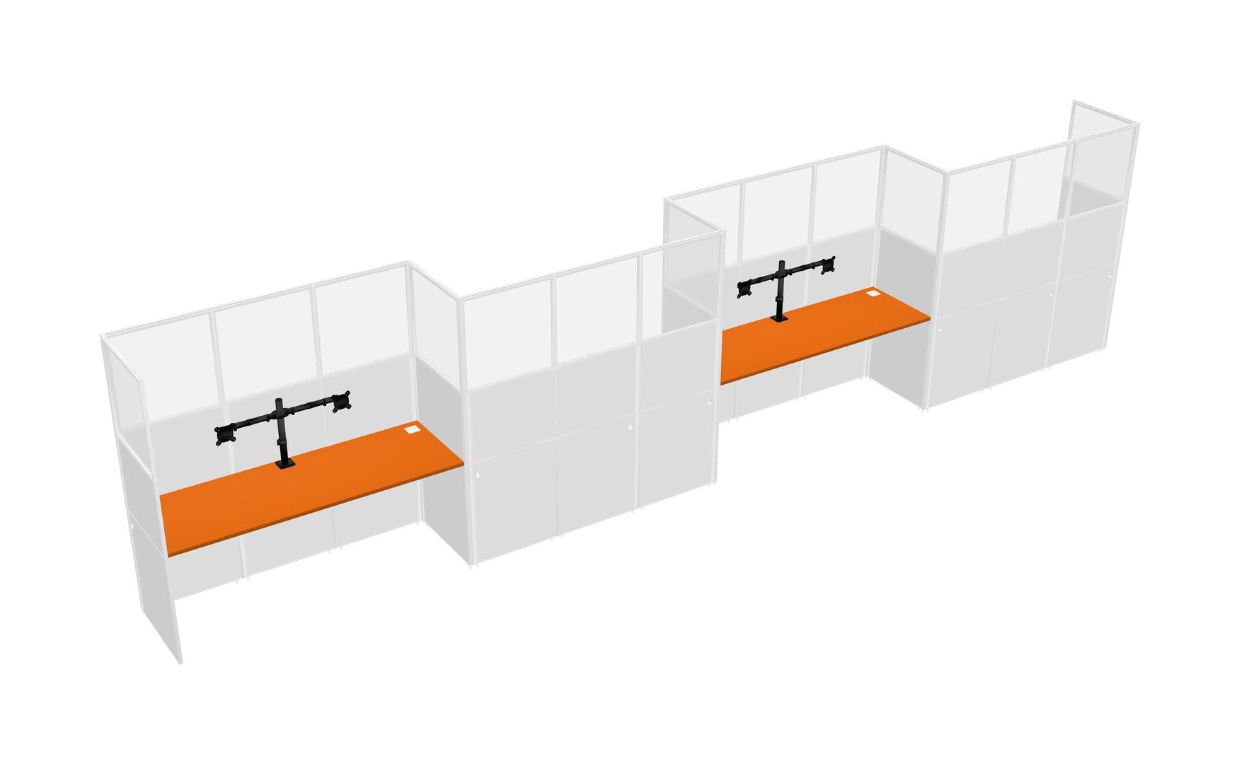 Orange Rectangular Cubicle Workstations For 4 - Zigzag Formation
