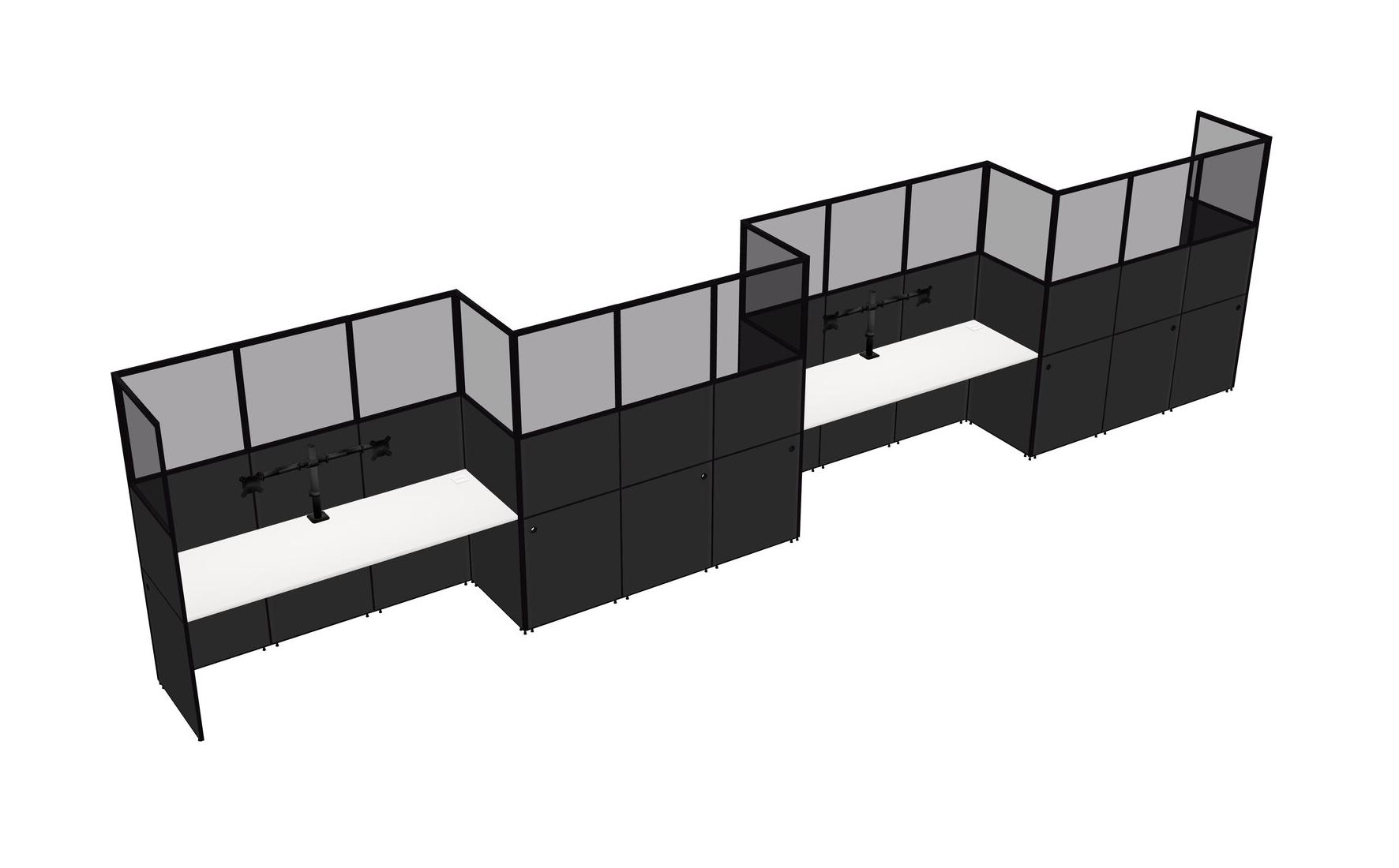 White Rectangular Cubicle Workstations For 4 - Zigzag Formation