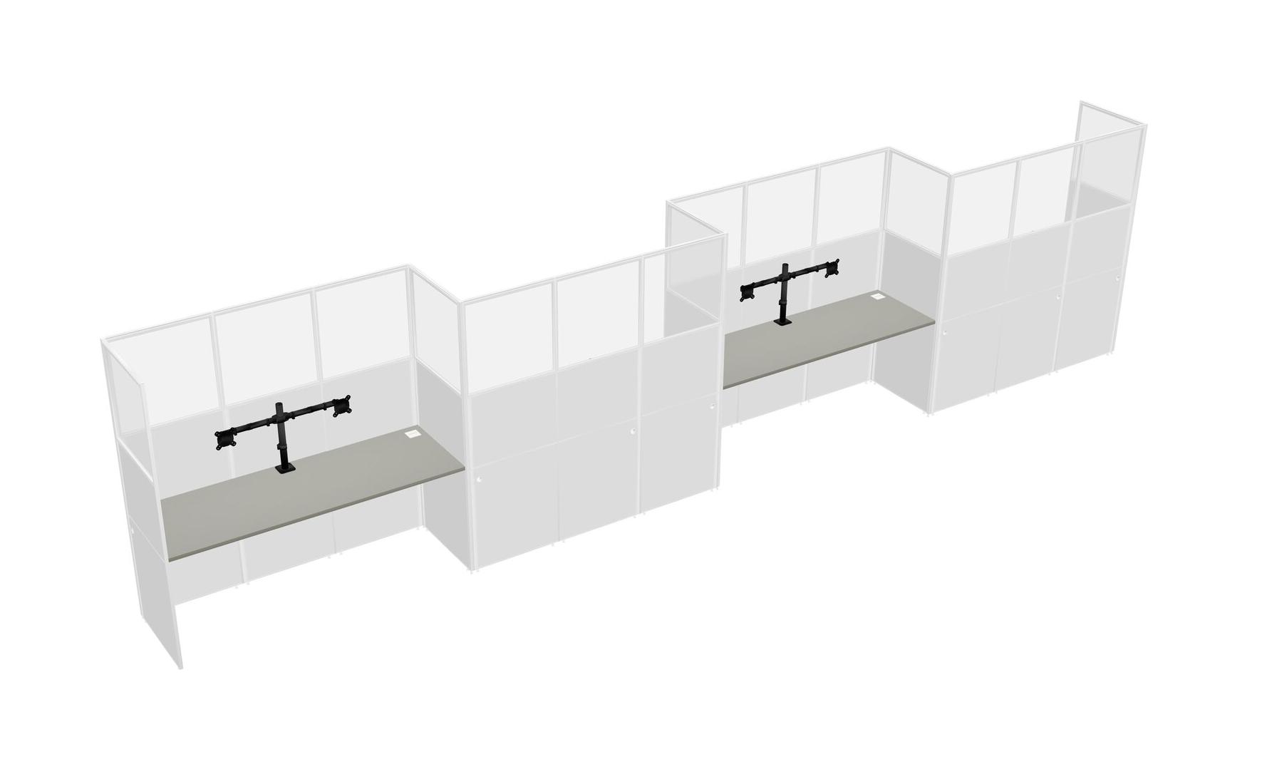 Grey Shadows Rectangular Cubicle Workstations For 4 - Zigzag Formation