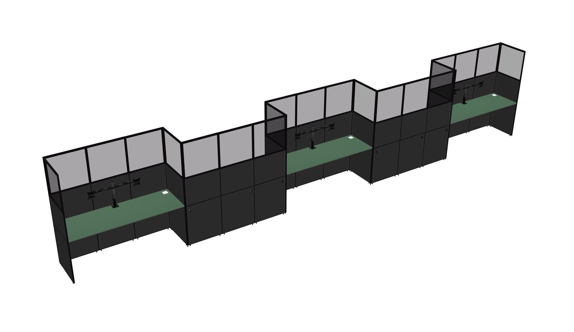 Green Rectangular Cubicle Workstations For 5 - Zigzag Formation
