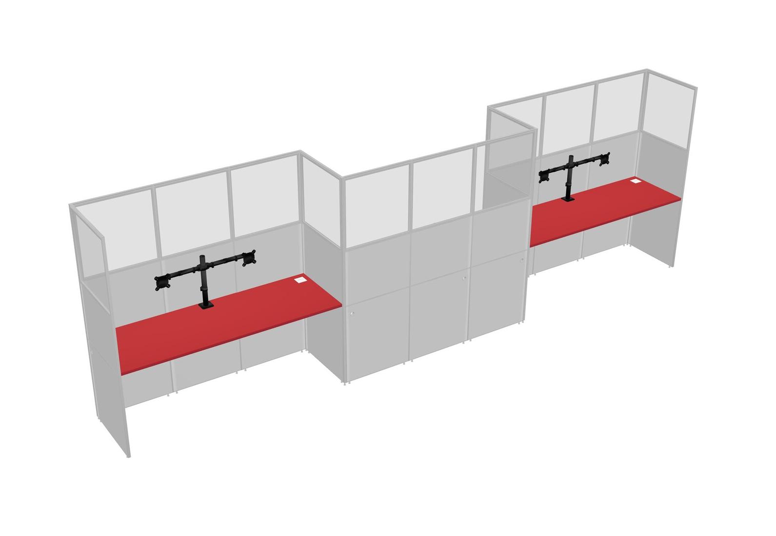 Prism Red Rectangular Cubicle Workstations For 3 - Zigzag Formation