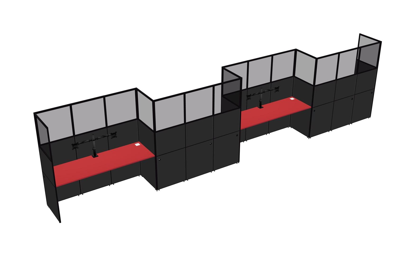 Prism Red Rectangular Cubicle Workstations For 4 - Zigzag Formation