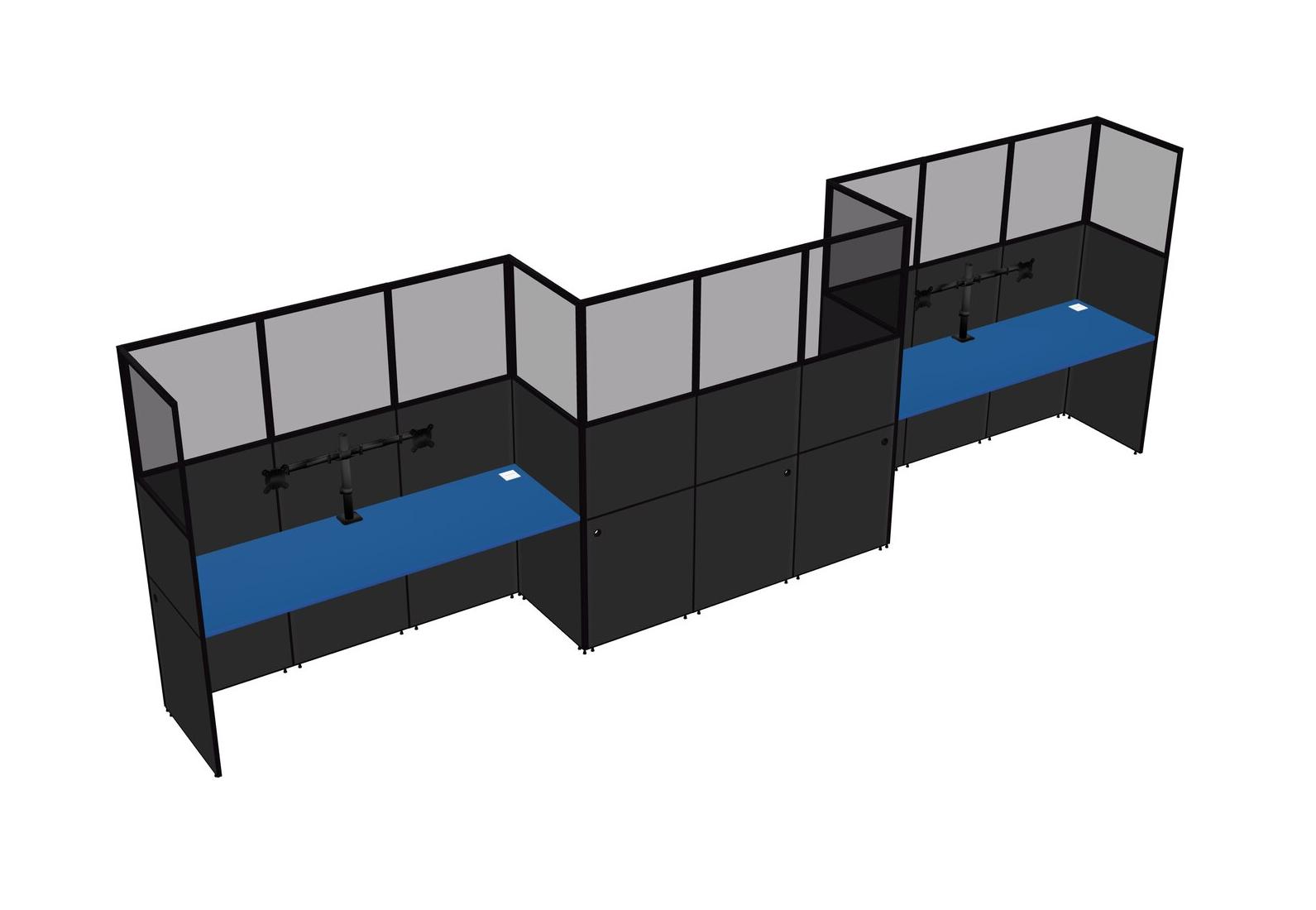 Prism Blue Rectangular Cubicle Workstations For 3 - Zigzag Formation