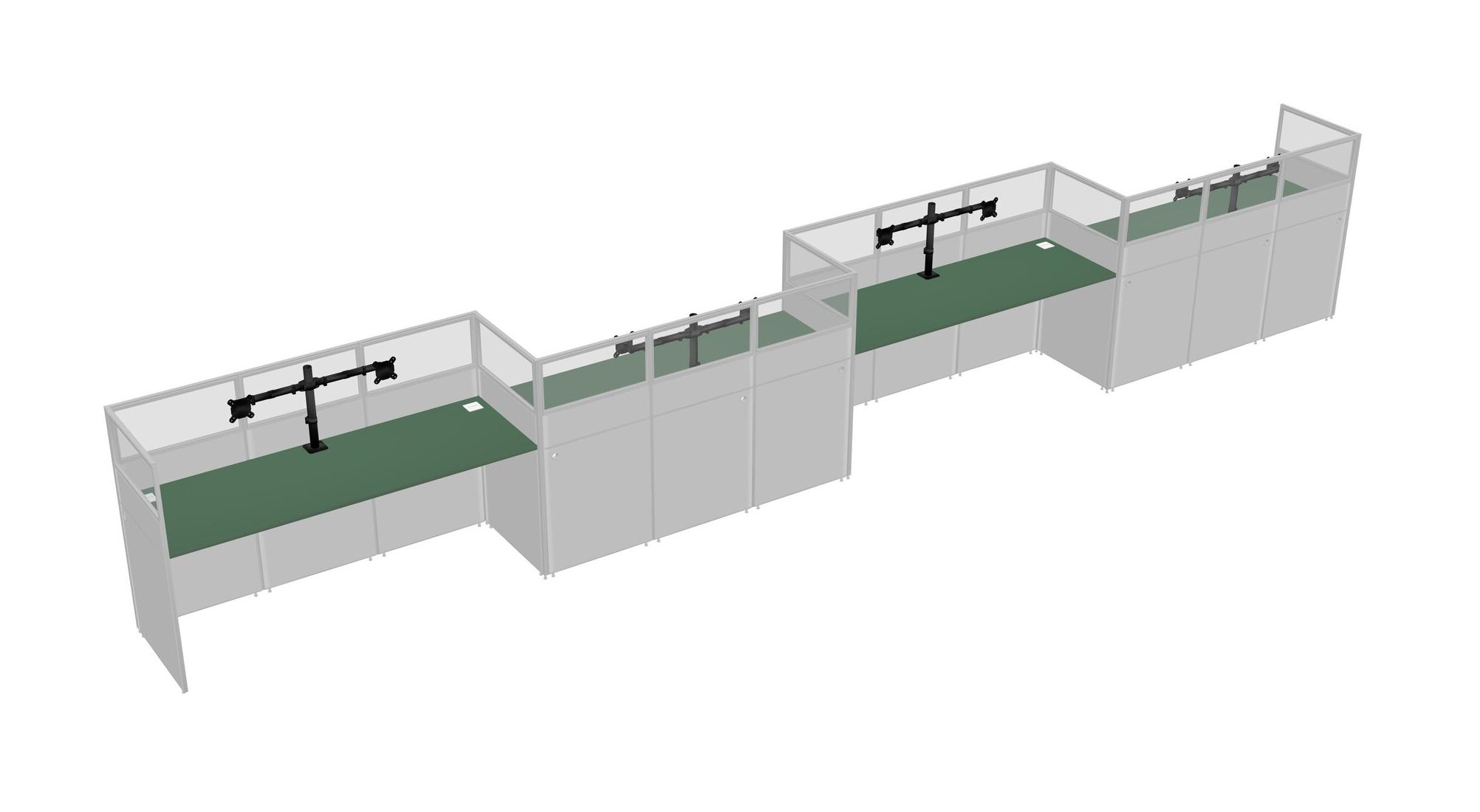 Green Rectangular Cubicle Workstations For 4 - Zigzag Formation