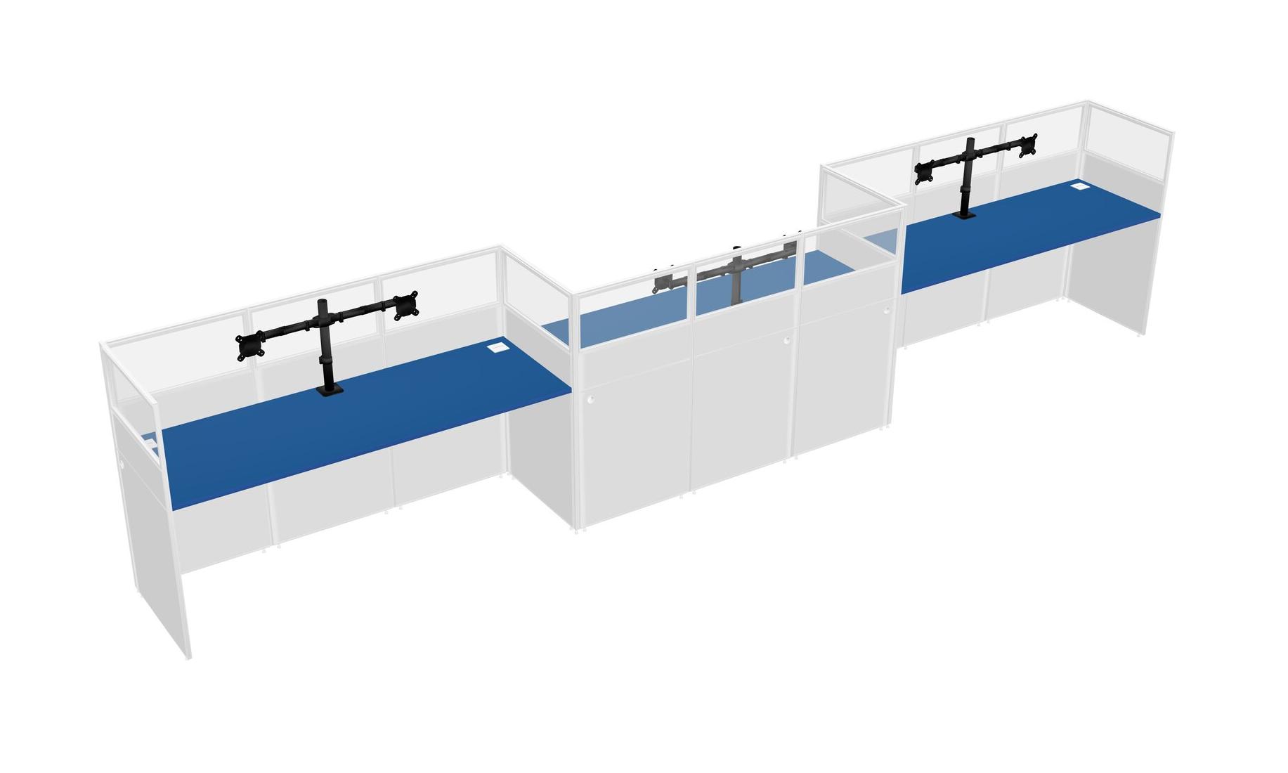 Prism Blue Rectangular Cubicle Workstations For 3 - Zigzag Formation