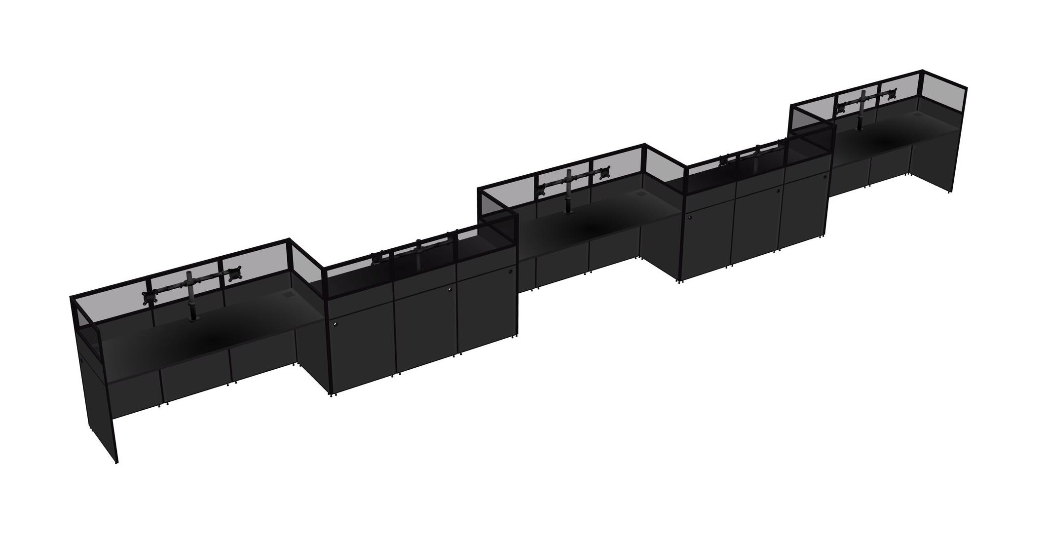 Black Rectangular Cubicle Workstations For 5 - Zigzag Formation