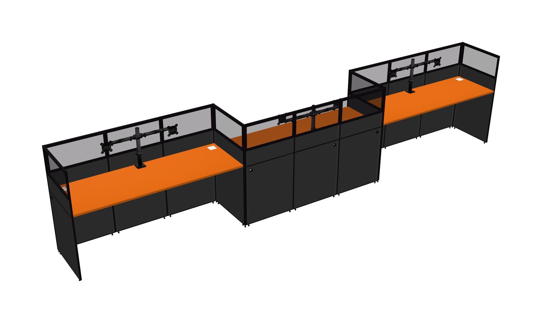Orange Rectangular Cubicle Workstations For 3 - Zigzag Formation