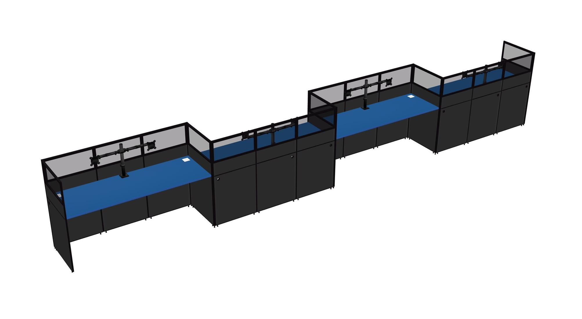 Prism Blue Rectangular Cubicle Workstations For 4 - Zigzag Formation