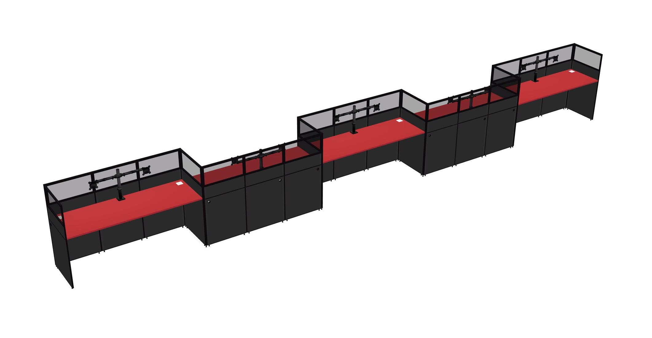 Prism Red Rectangular Cubicle Workstations For 5 - Zigzag Formation