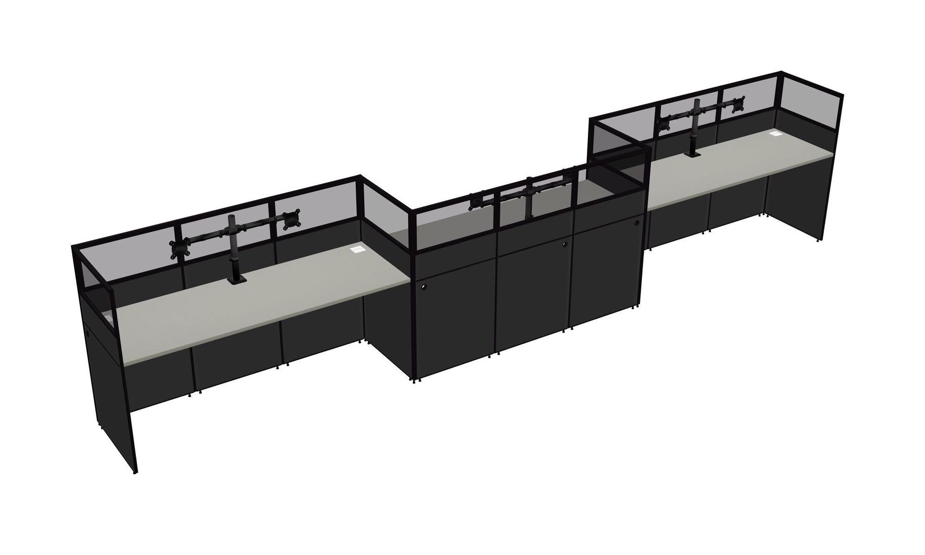 Grey Shadows Rectangular Cubicle Workstations For 3 - Zigzag Formation