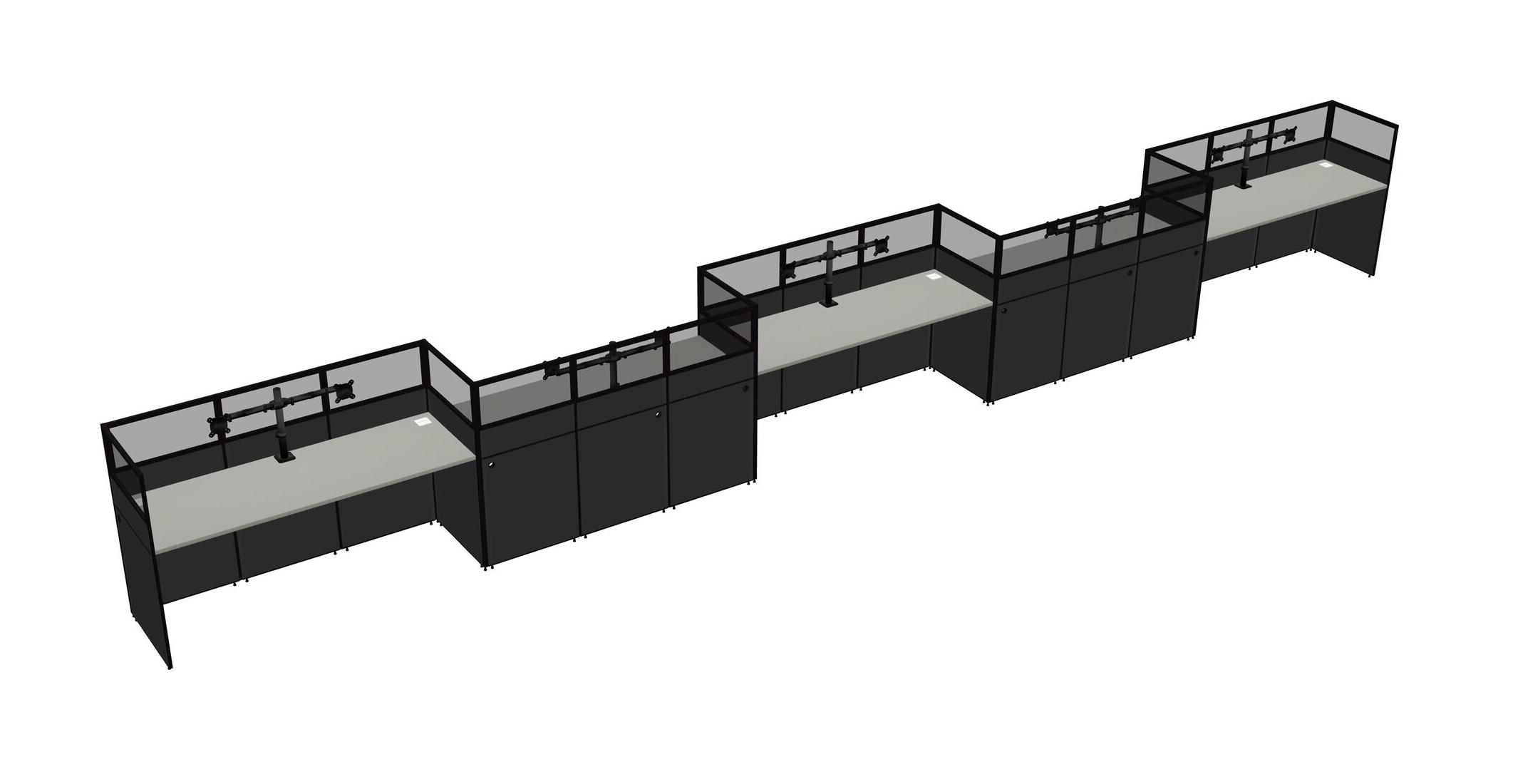 Grey Shadows Rectangular Cubicle Workstations For 5 - Zigzag Formation