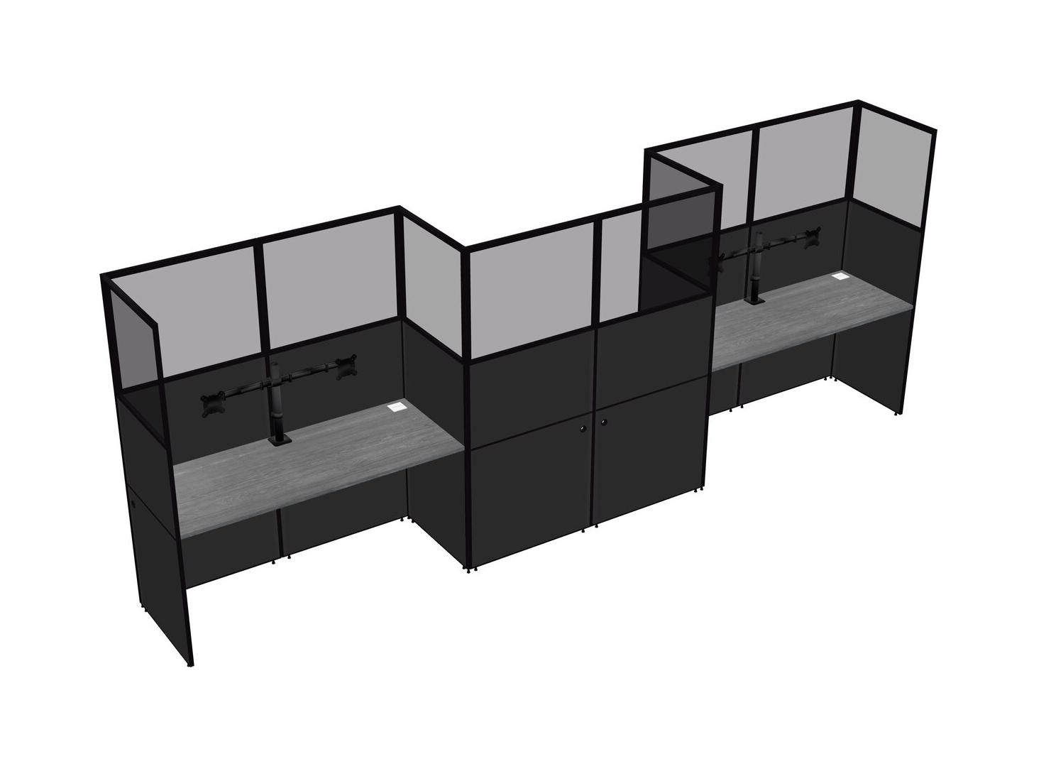 Grey Rectangular Cubicle Workstations For 3 - Zigzag Formation