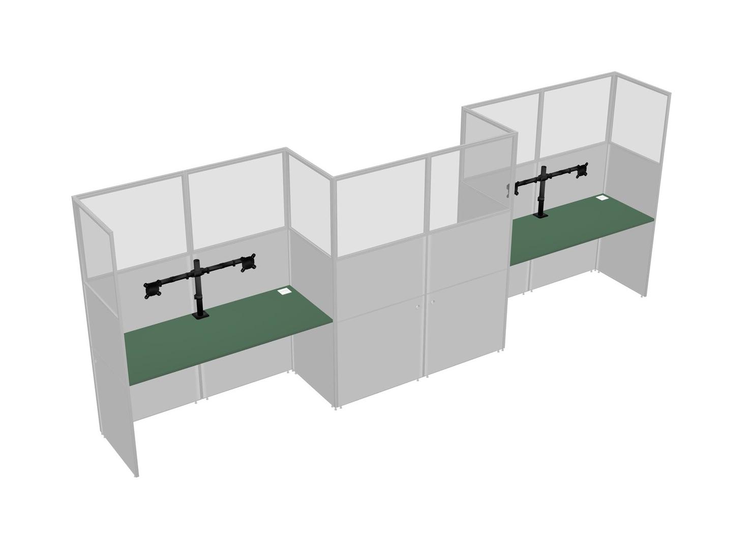 Green Rectangular Cubicle Workstations For 3 - Zigzag Formation