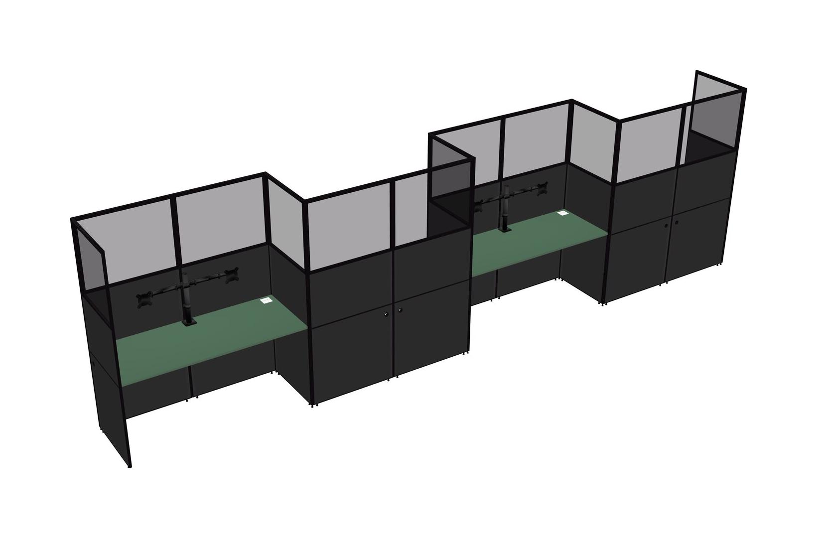 Green Rectangular Cubicle Workstations For 4 - Zigzag Formation