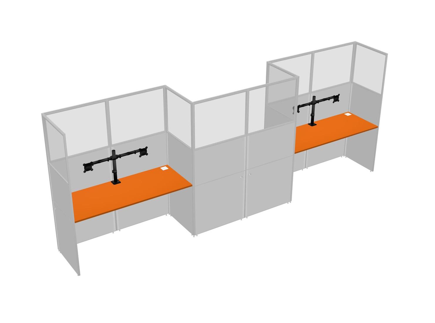 Orange Rectangular Cubicle Workstations For 3 - Zigzag Formation