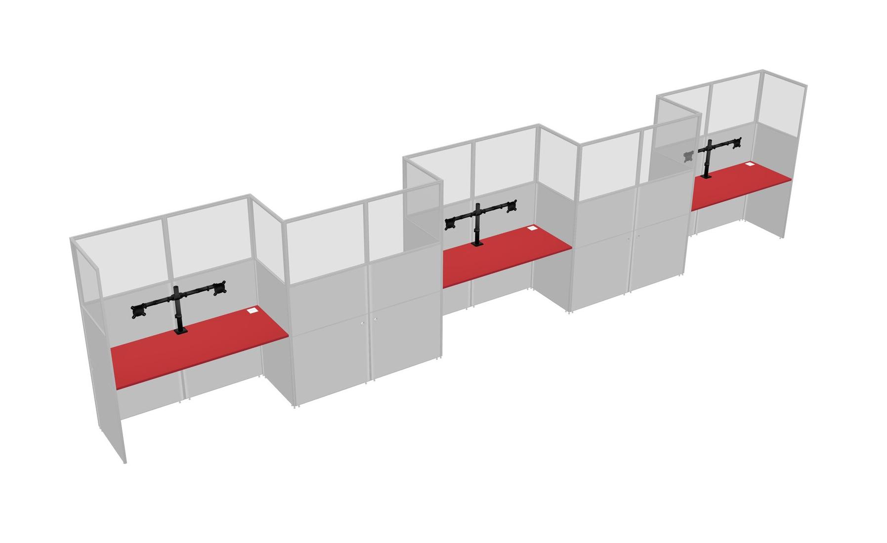 Prism Red Rectangular Cubicle Workstations For 5 - Zigzag Formation
