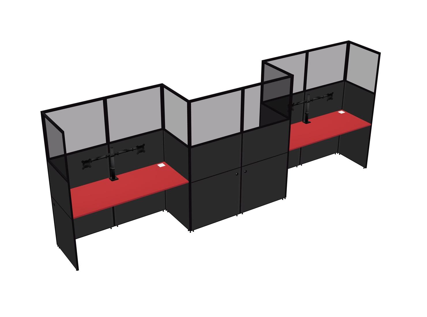 Prism Red Rectangular Cubicle Workstations For 3 - Zigzag Formation