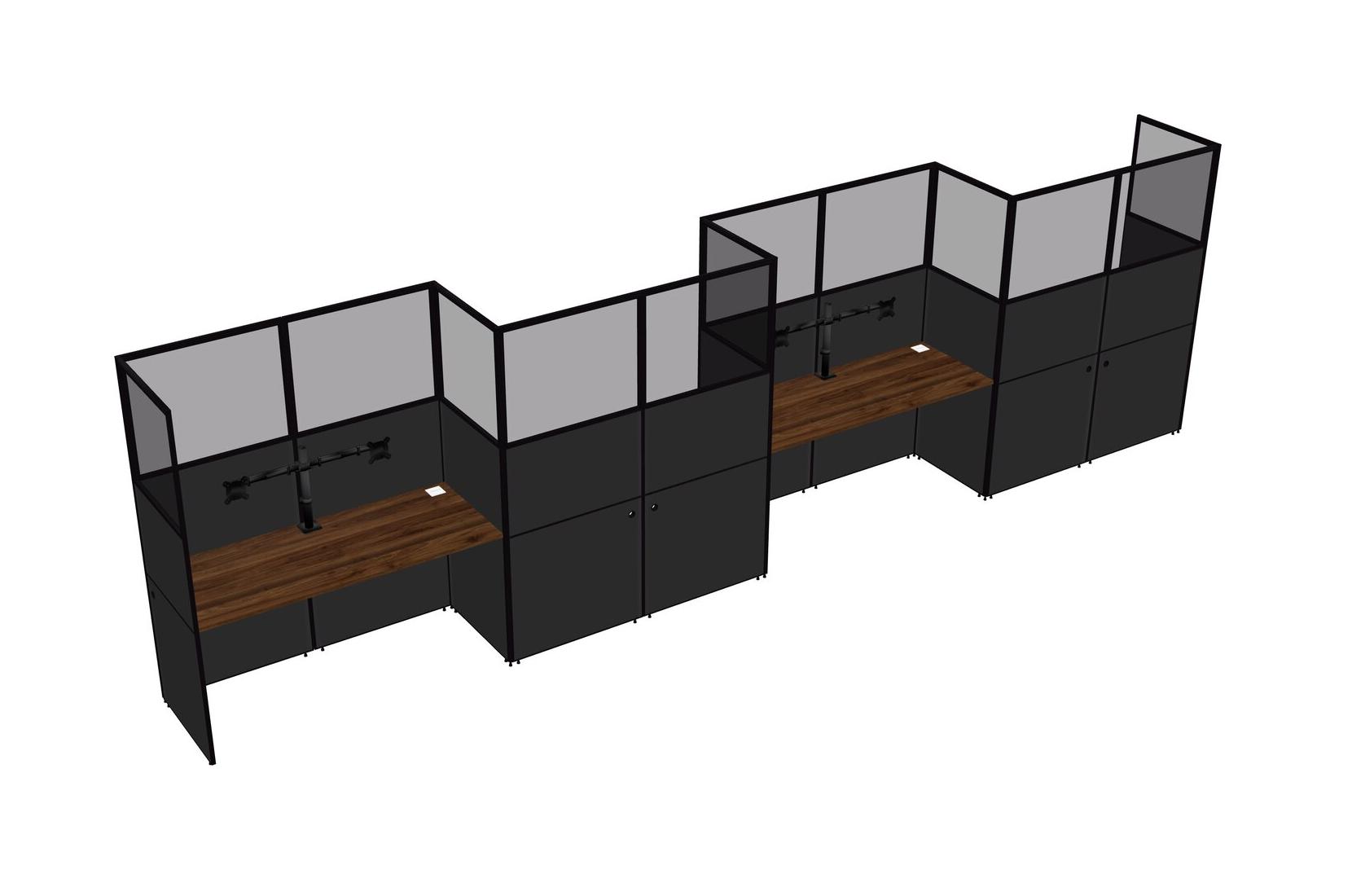 Columbia Walnut Rectangular Cubicle Workstations For 4 - Zigzag Formation