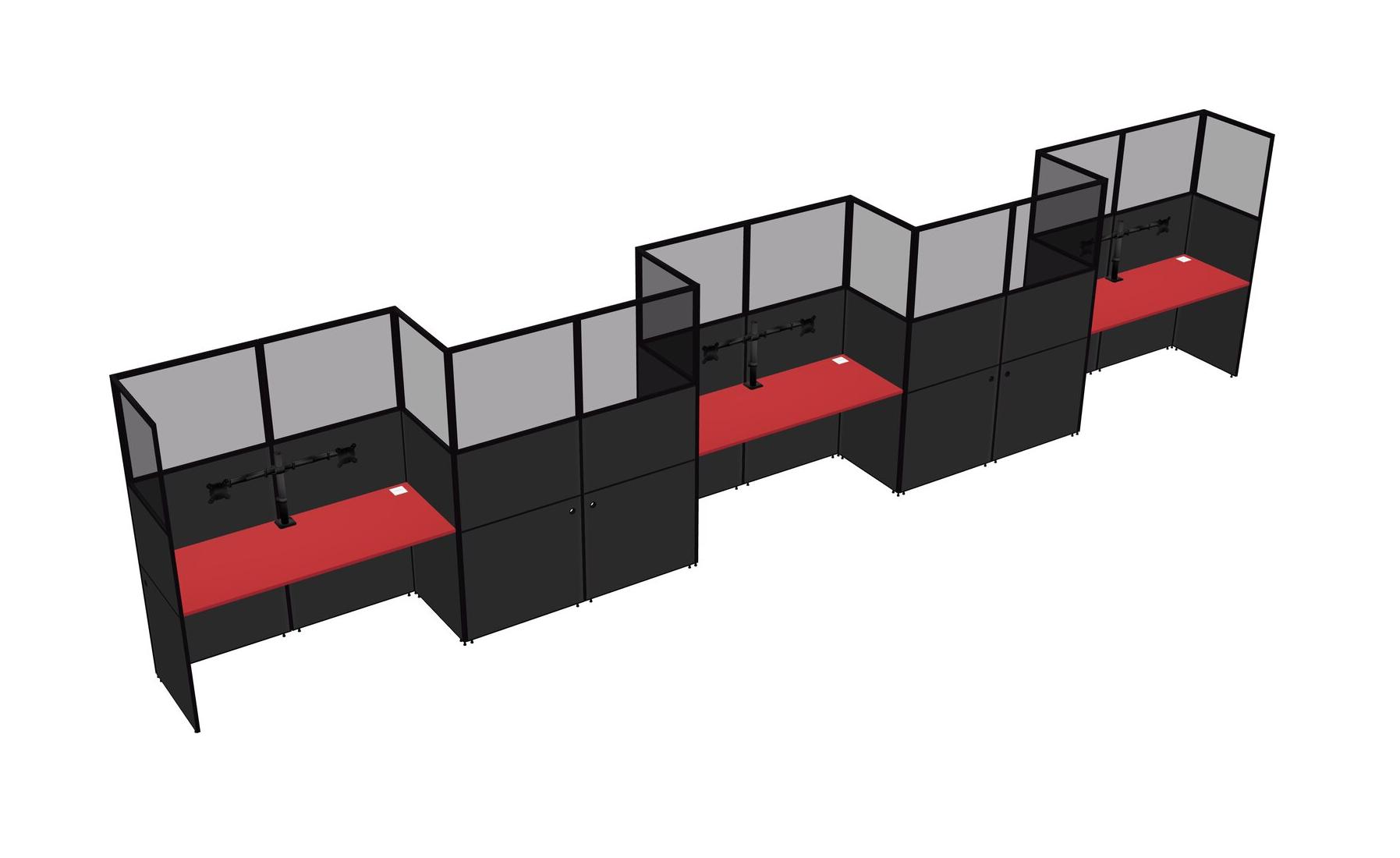 Prism Red Rectangular Cubicle Workstations For 5 - Zigzag Formation