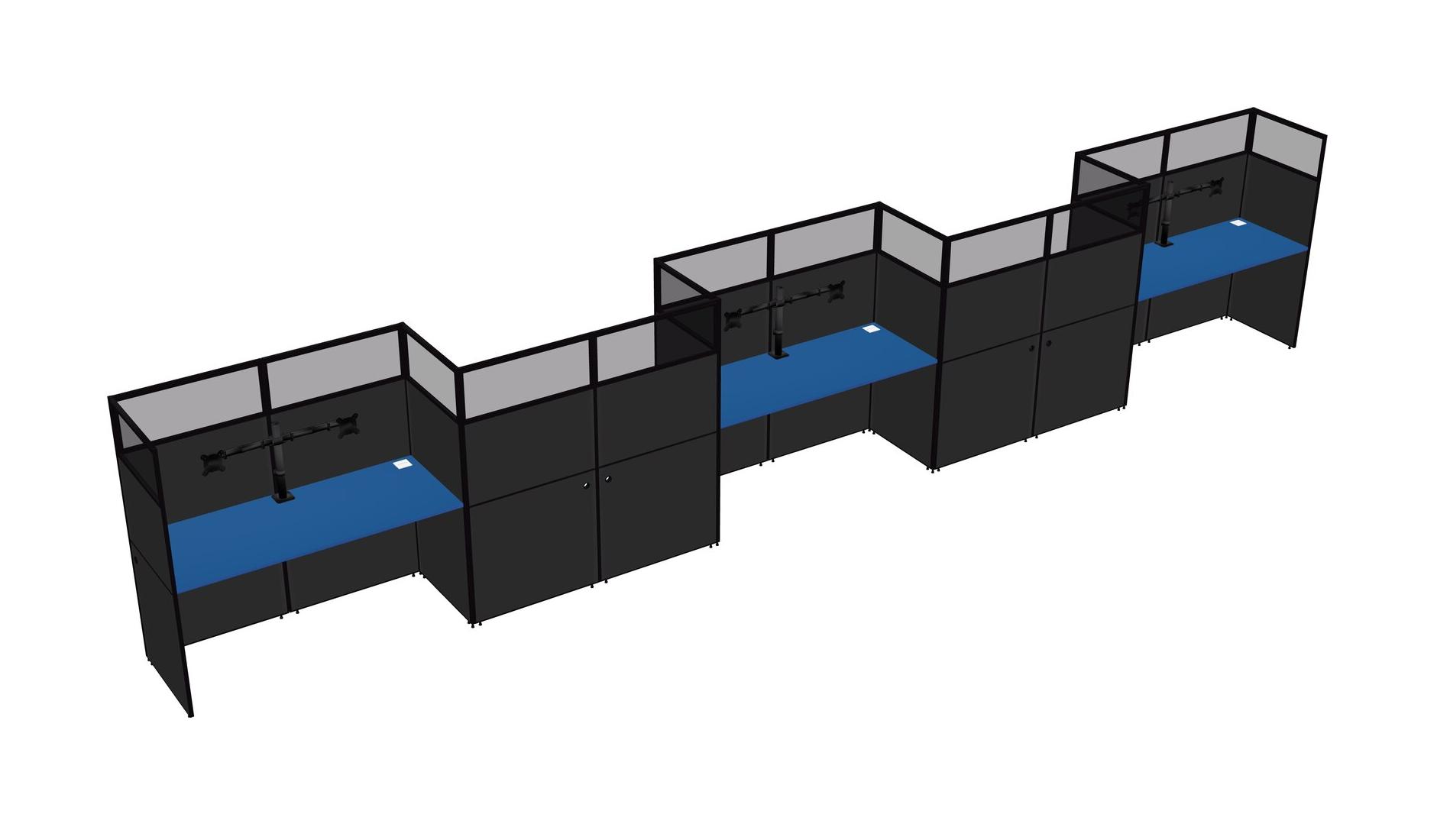 Prism Blue Rectangular Cubicle Workstations For 5 - Zigzag Formation