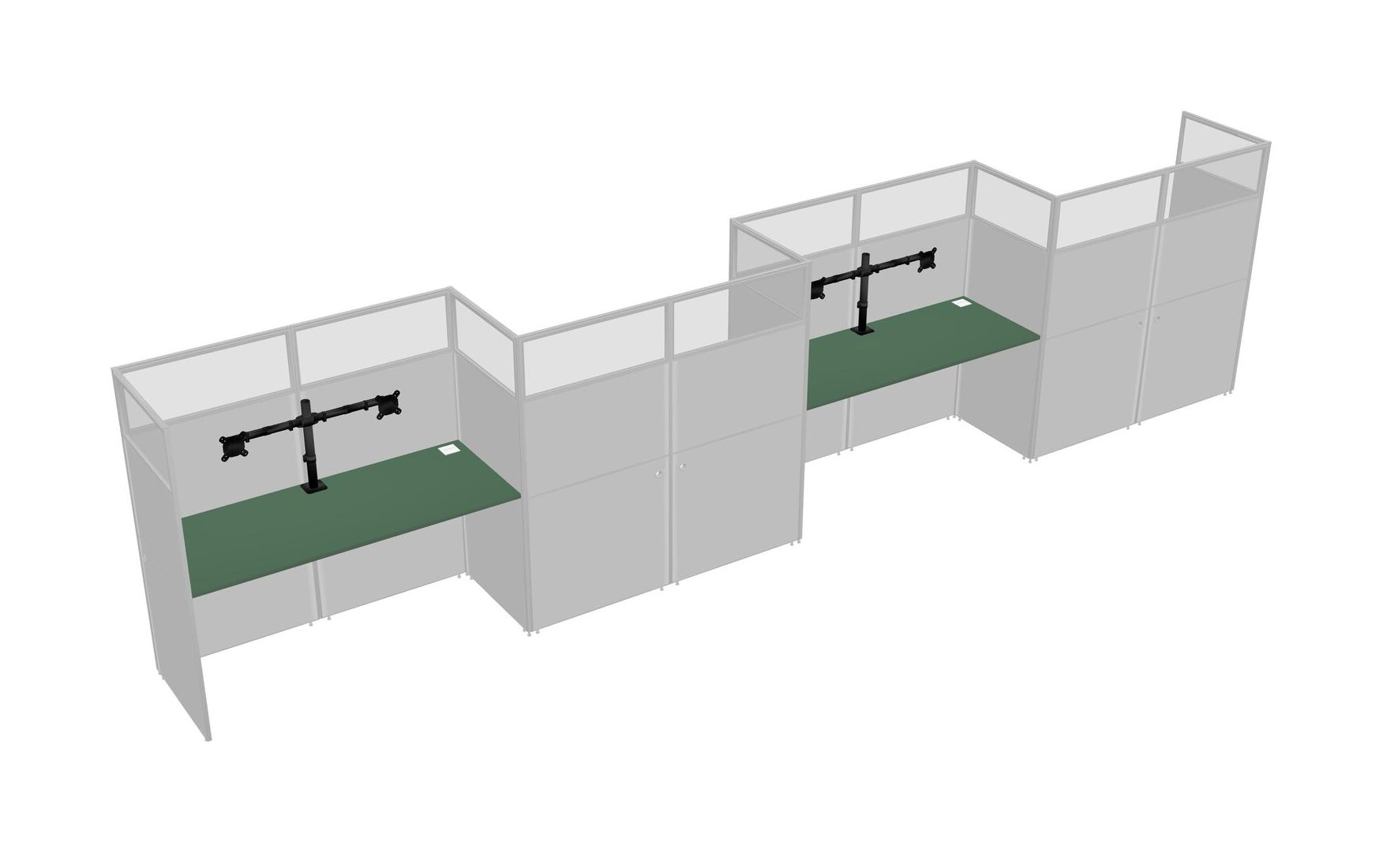Green Rectangular Cubicle Workstations For 4 - Zigzag Formation