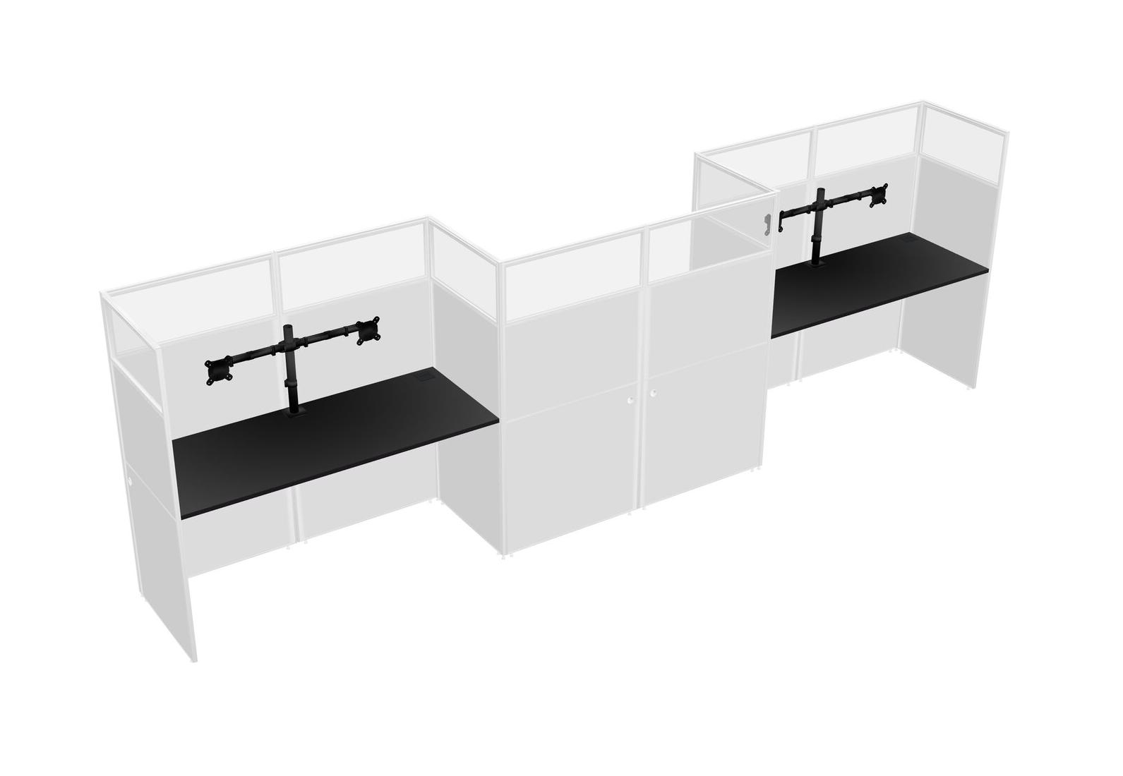 Black Rectangular Cubicle Workstations For 3 - Zigzag Formation
