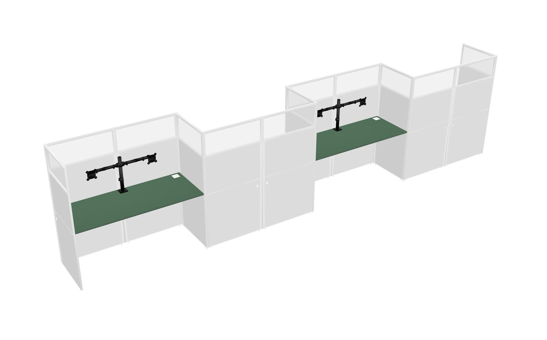 Green Rectangular Cubicle Workstations For 4 - Zigzag Formation