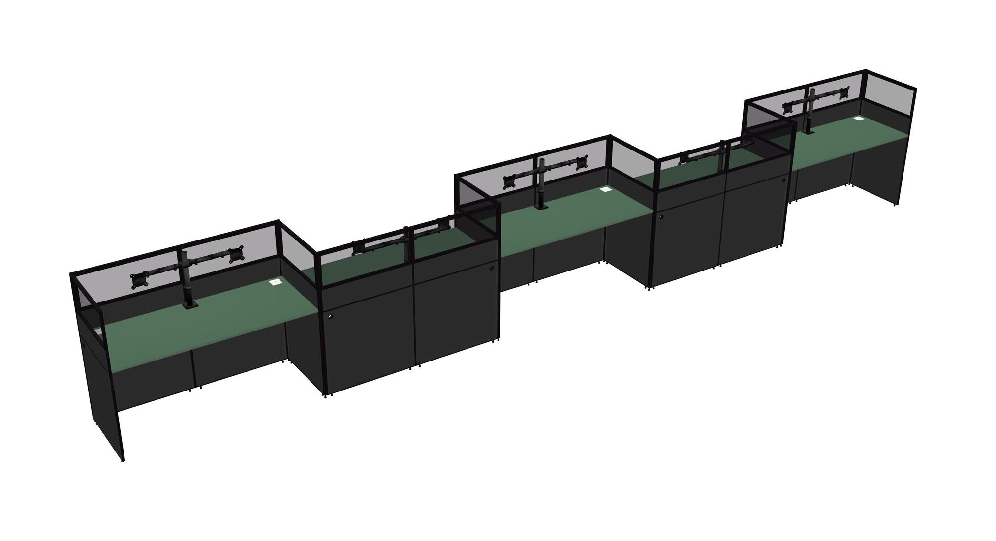 Green Rectangular Cubicle Workstations For 5 - Zigzag Formation