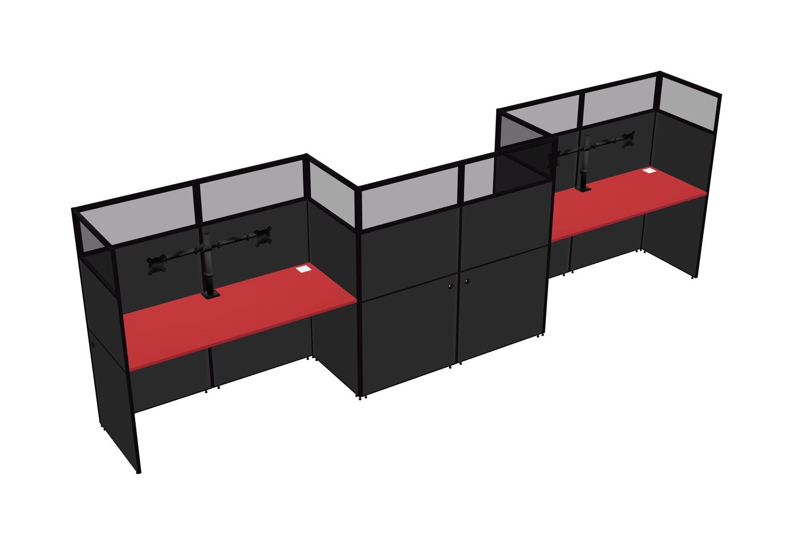 Prism Red Rectangular Cubicle Workstations For 3 - Zigzag Formation
