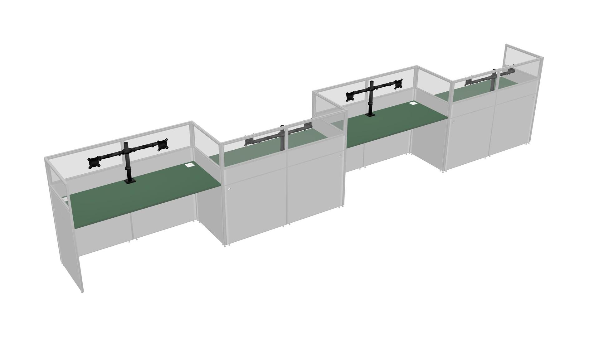 Green Rectangular Cubicle Workstations For 4 - Zigzag Formation