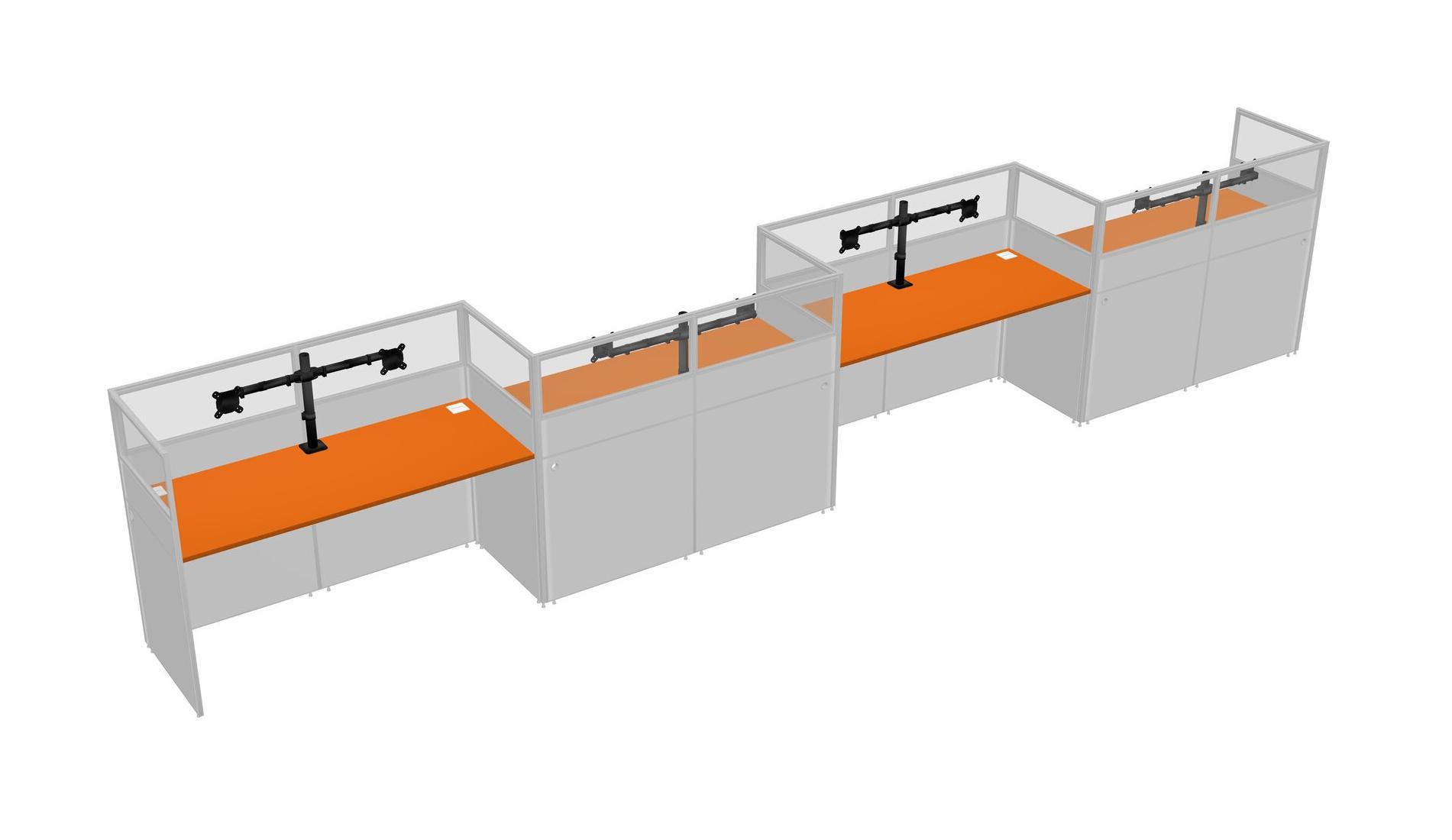 Orange Rectangular Cubicle Workstations For 4 - Zigzag Formation
