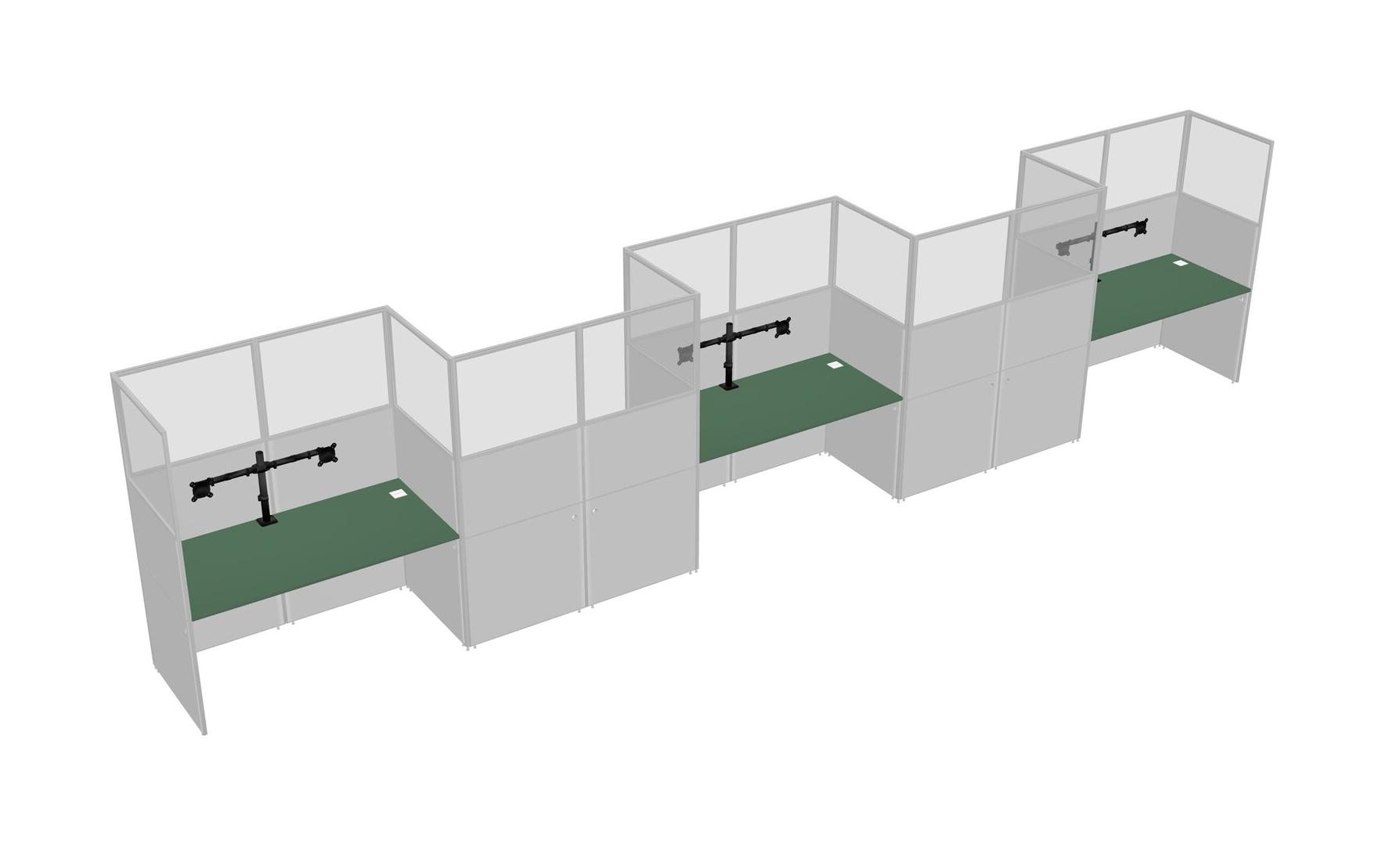 Green Rectangular Cubicle Workstations For 5 - Zigzag Formation