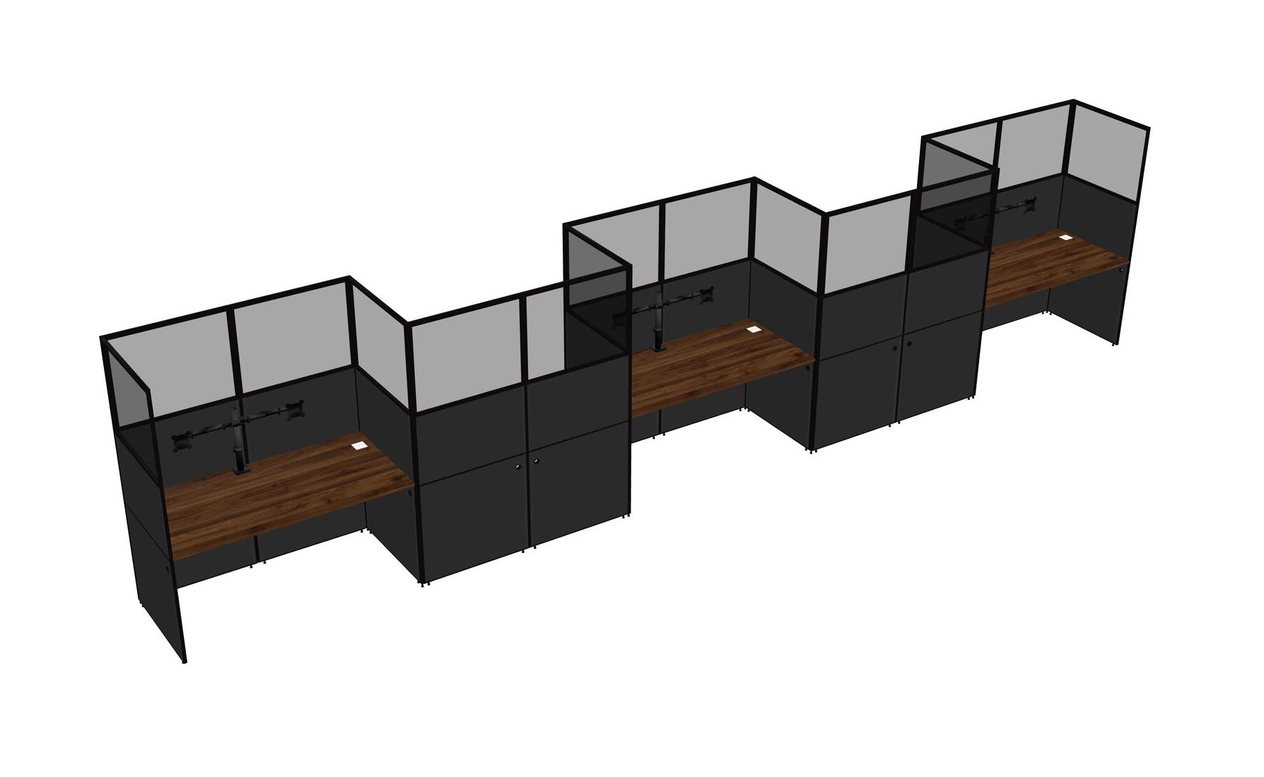 Columbia Walnut Rectangular Cubicle Workstations For 5 - Zigzag Formation
