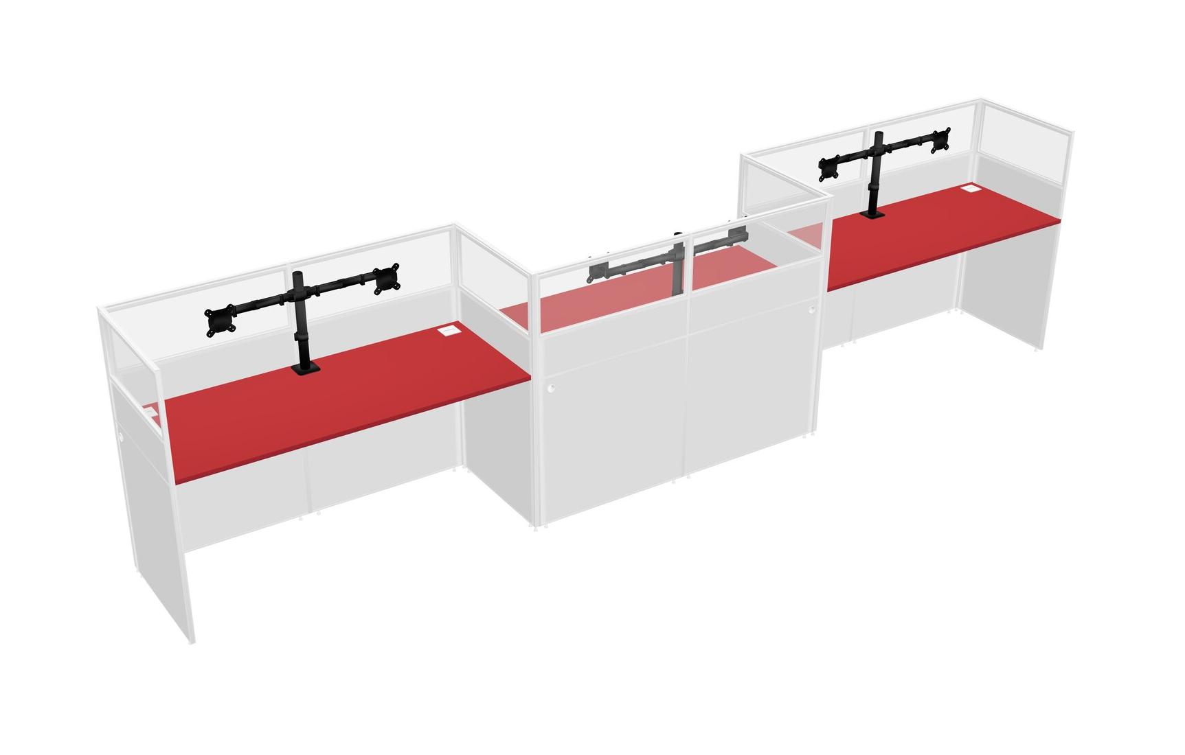 Prism Red Rectangular Cubicle Workstations For 3 - Zigzag Formation
