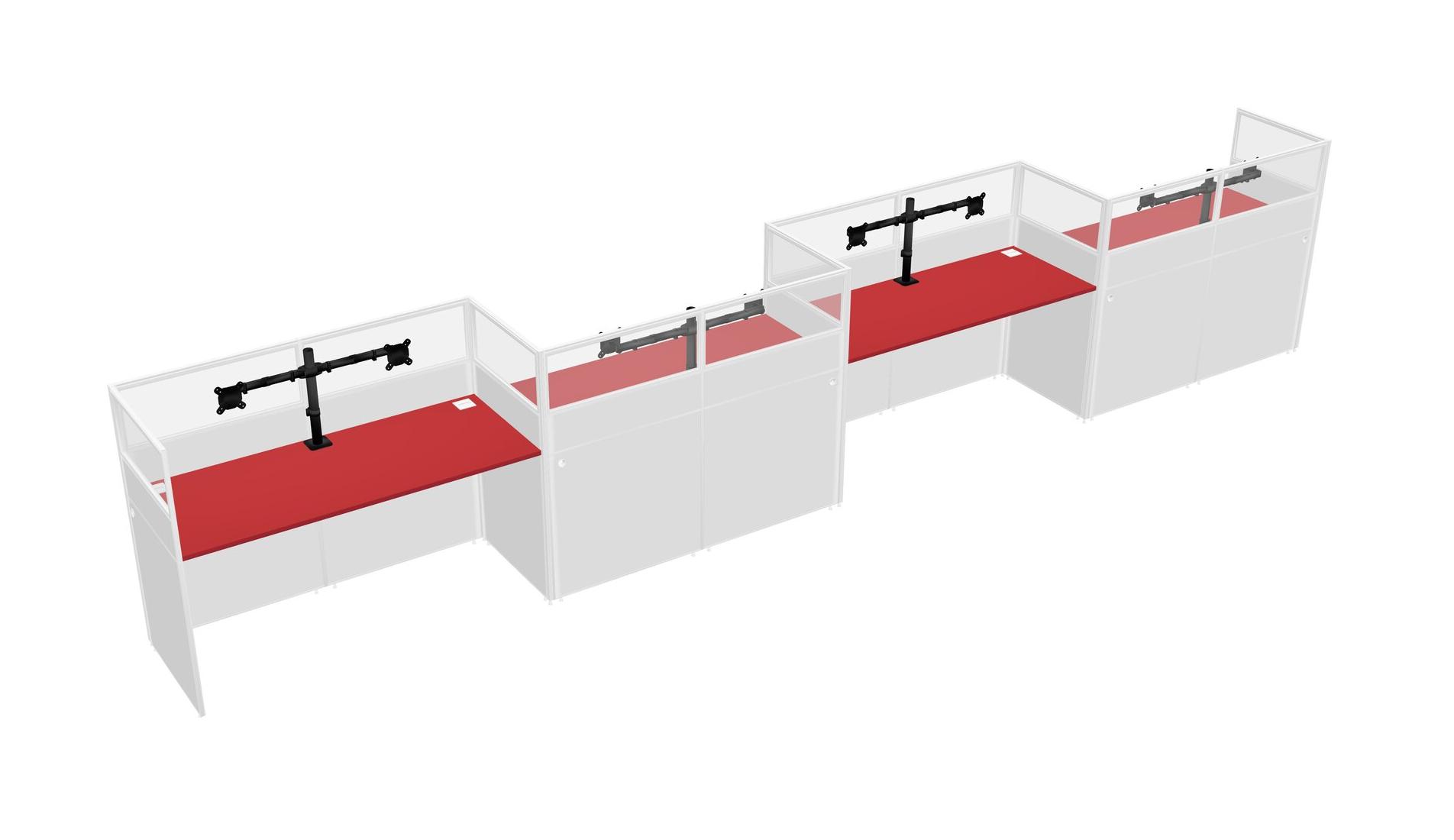 Prism Red Rectangular Cubicle Workstations For 4 - Zigzag Formation