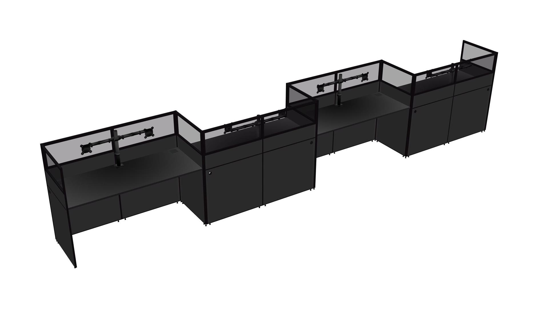 Black Rectangular Cubicle Workstations For 4 - Zigzag Formation