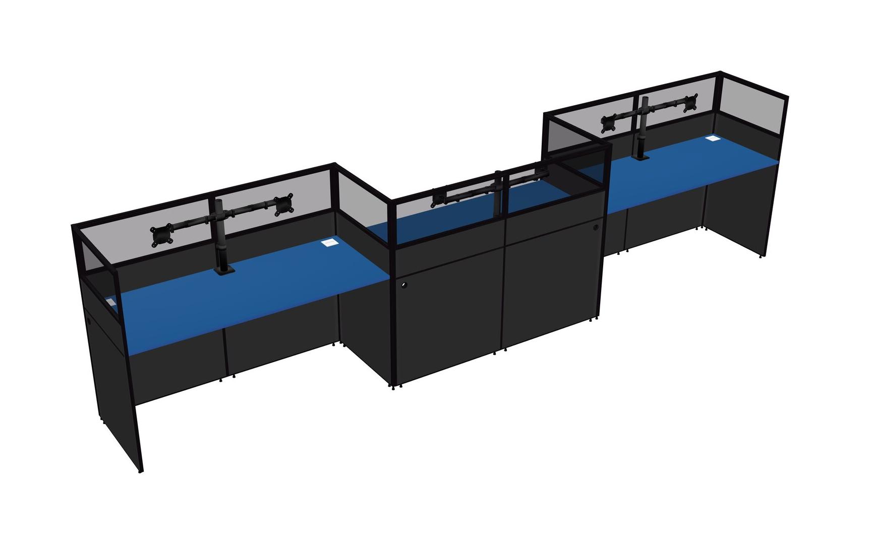 Prism Blue Rectangular Cubicle Workstations For 3 - Zigzag Formation