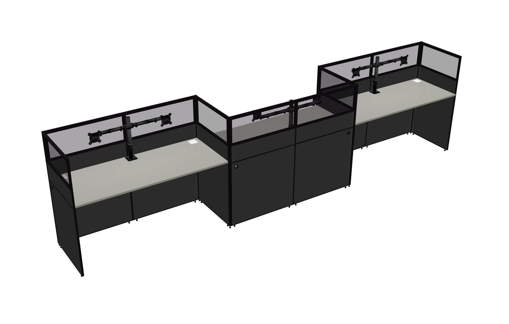 Grey Shadows Rectangular Cubicle Workstations For 3 - Zigzag Formation