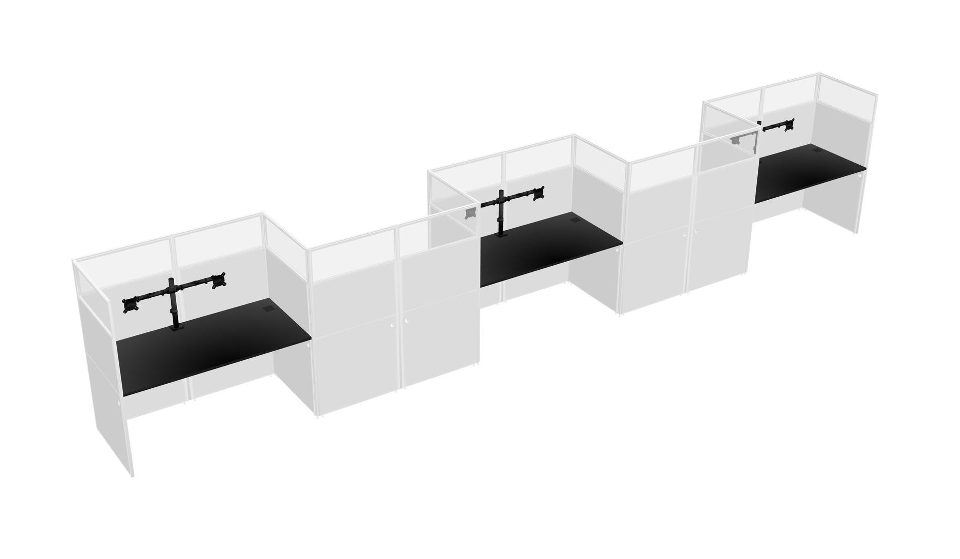 Black Rectangular Cubicle Workstations For 5 - Zigzag Formation