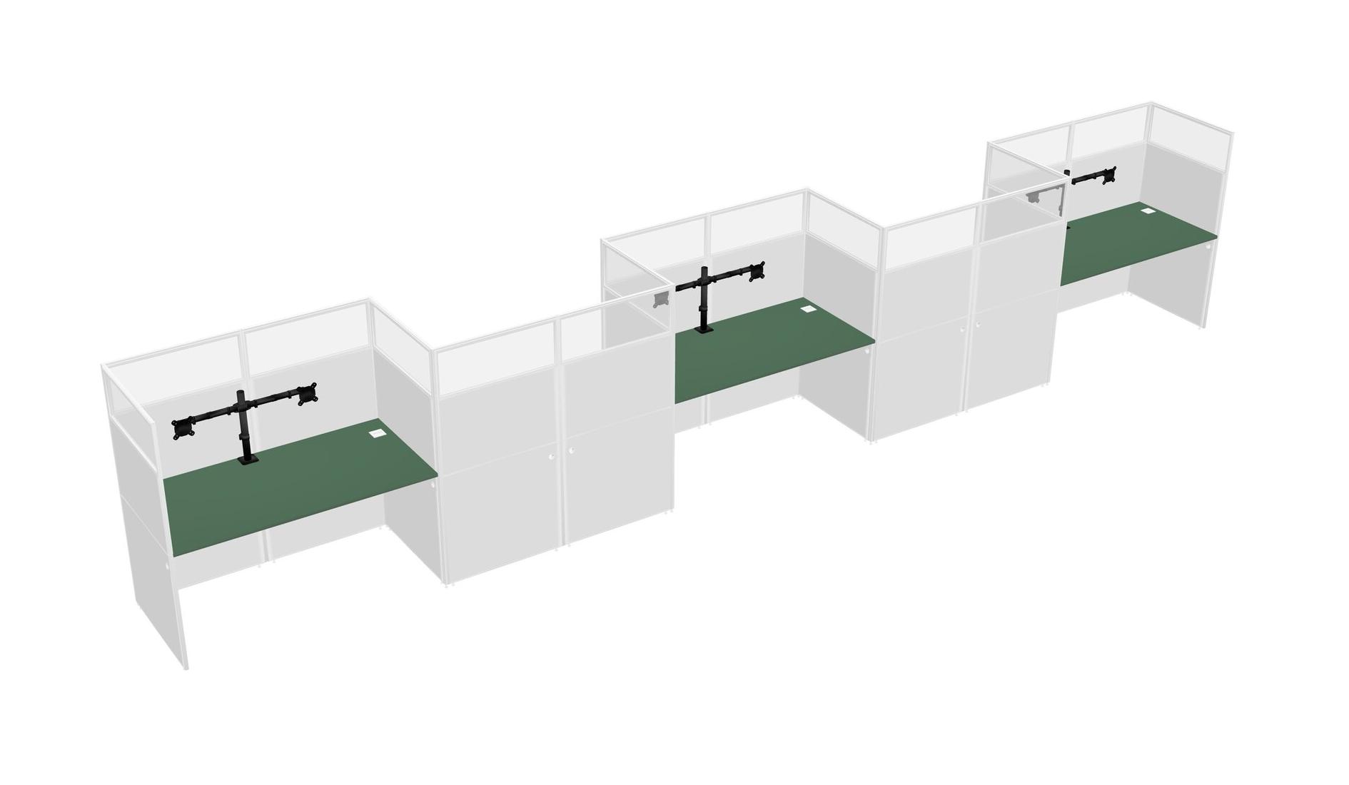 Green Rectangular Cubicle Workstations For 5 - Zigzag Formation