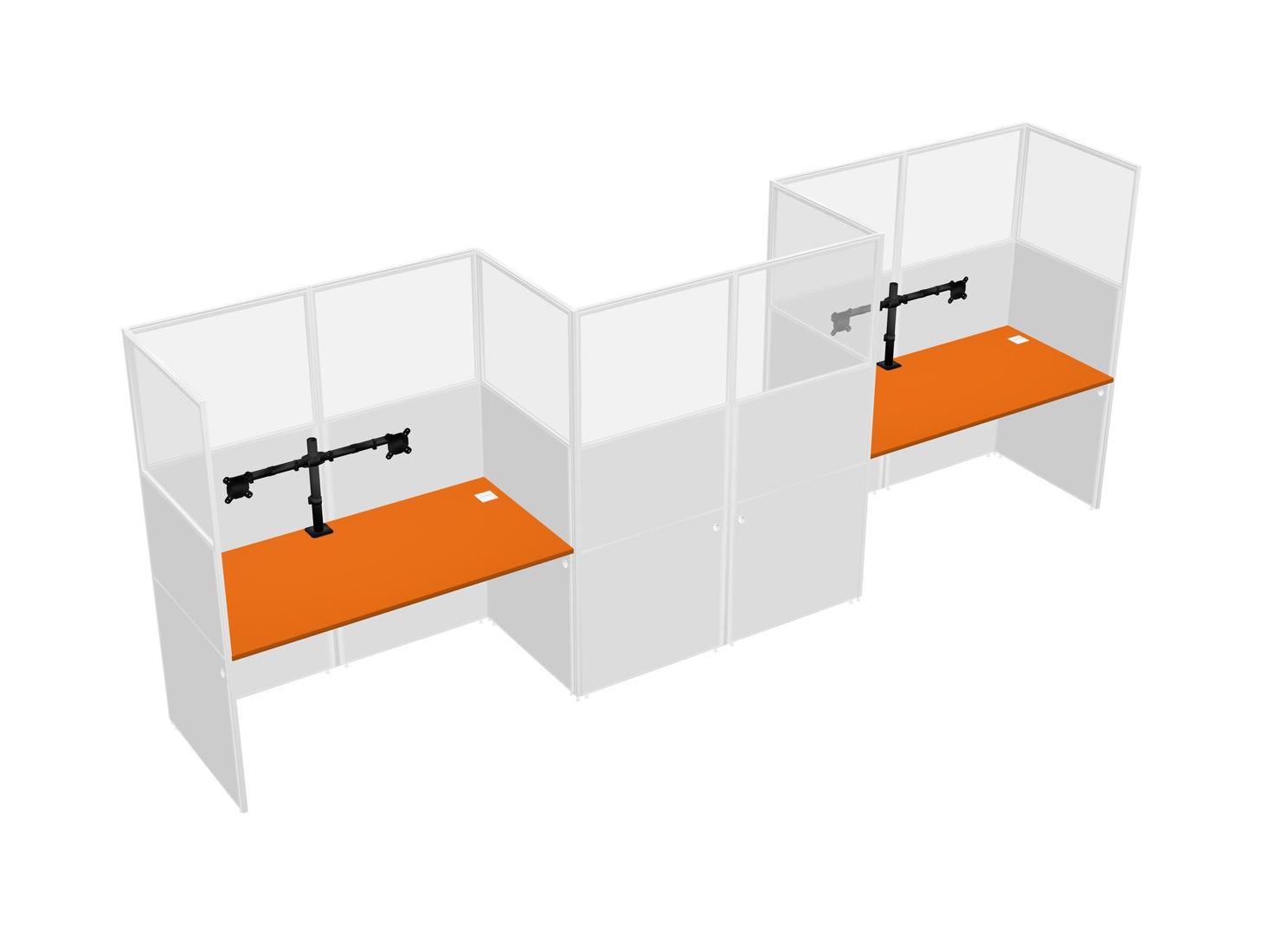 Orange Rectangular Cubicle Workstations For 3 - Zigzag Formation