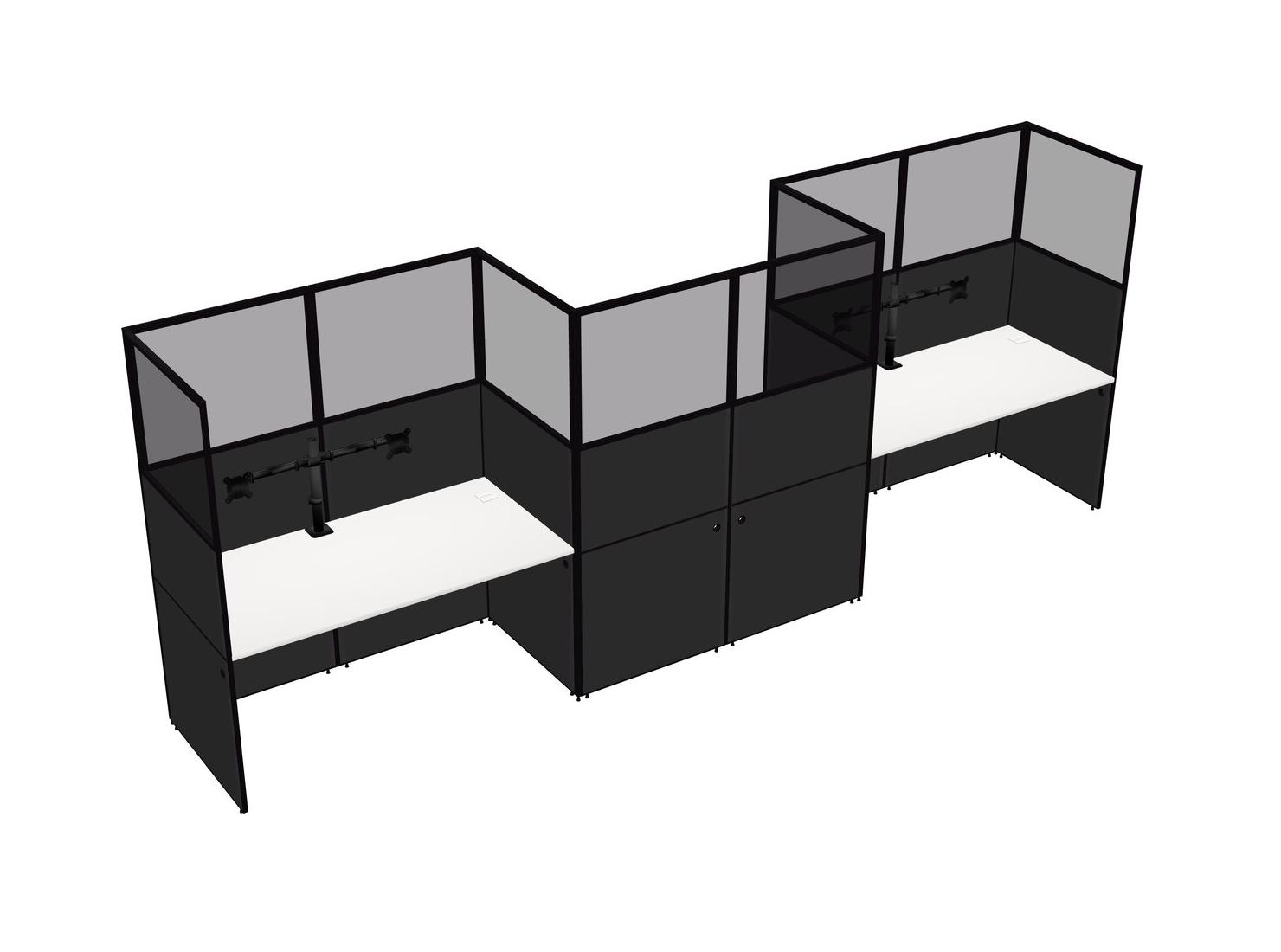 White Rectangular Cubicle Workstations For 3 - Zigzag Formation