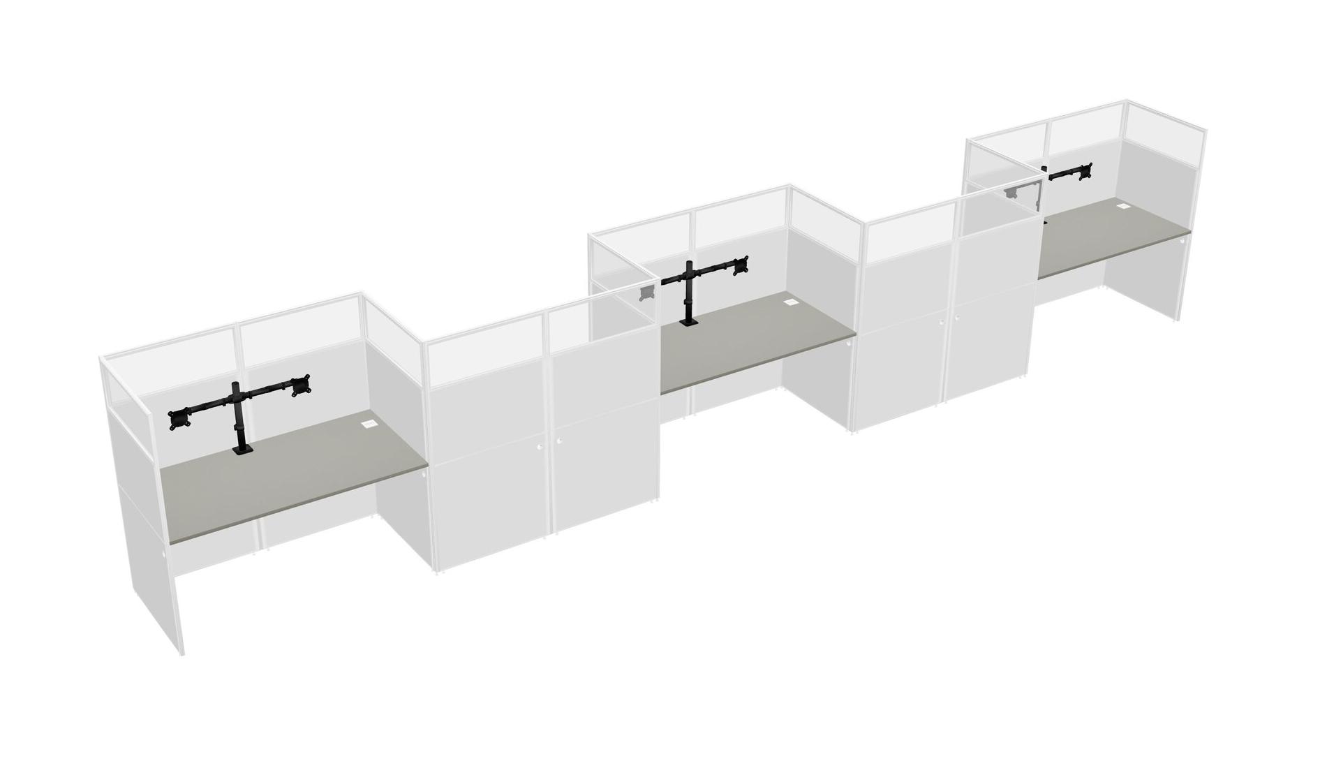 Grey Shadows Rectangular Cubicle Workstations For 5 - Zigzag Formation