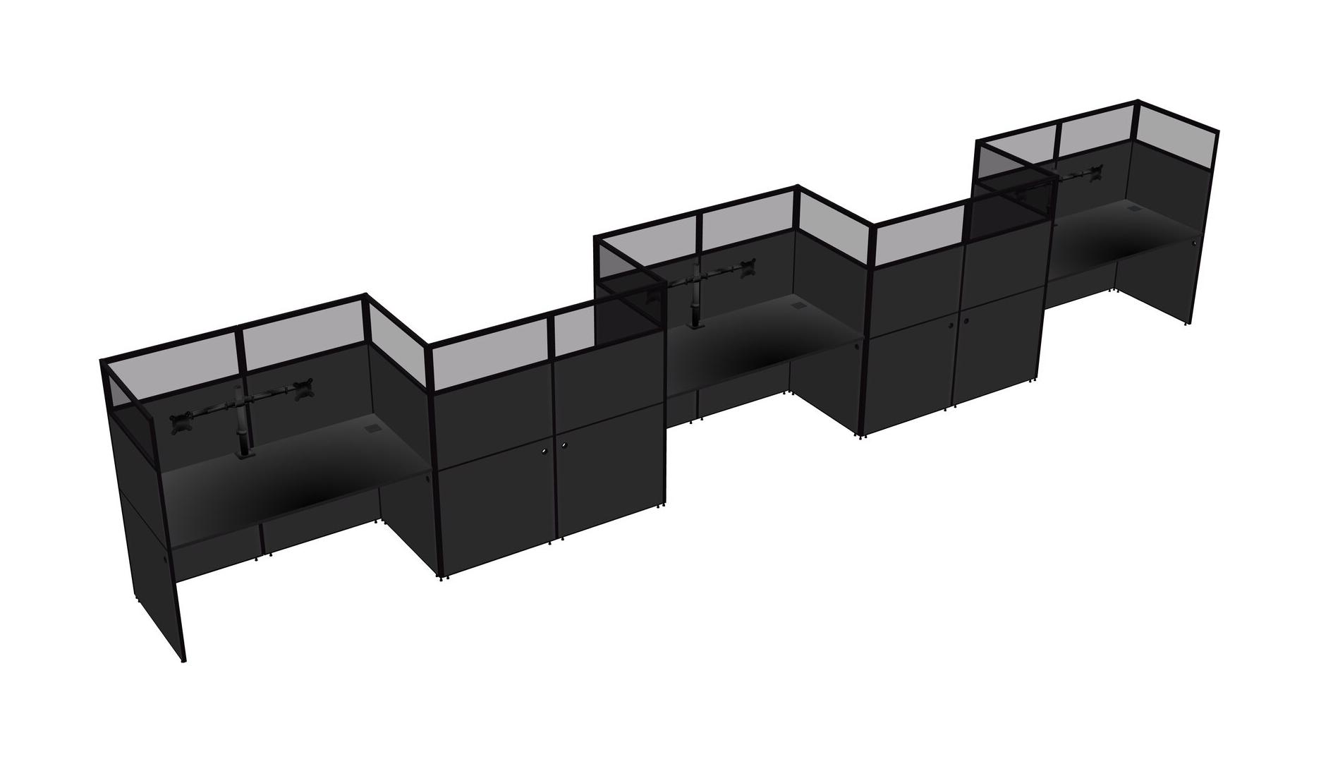 Black Rectangular Cubicle Workstations For 5 - Zigzag Formation