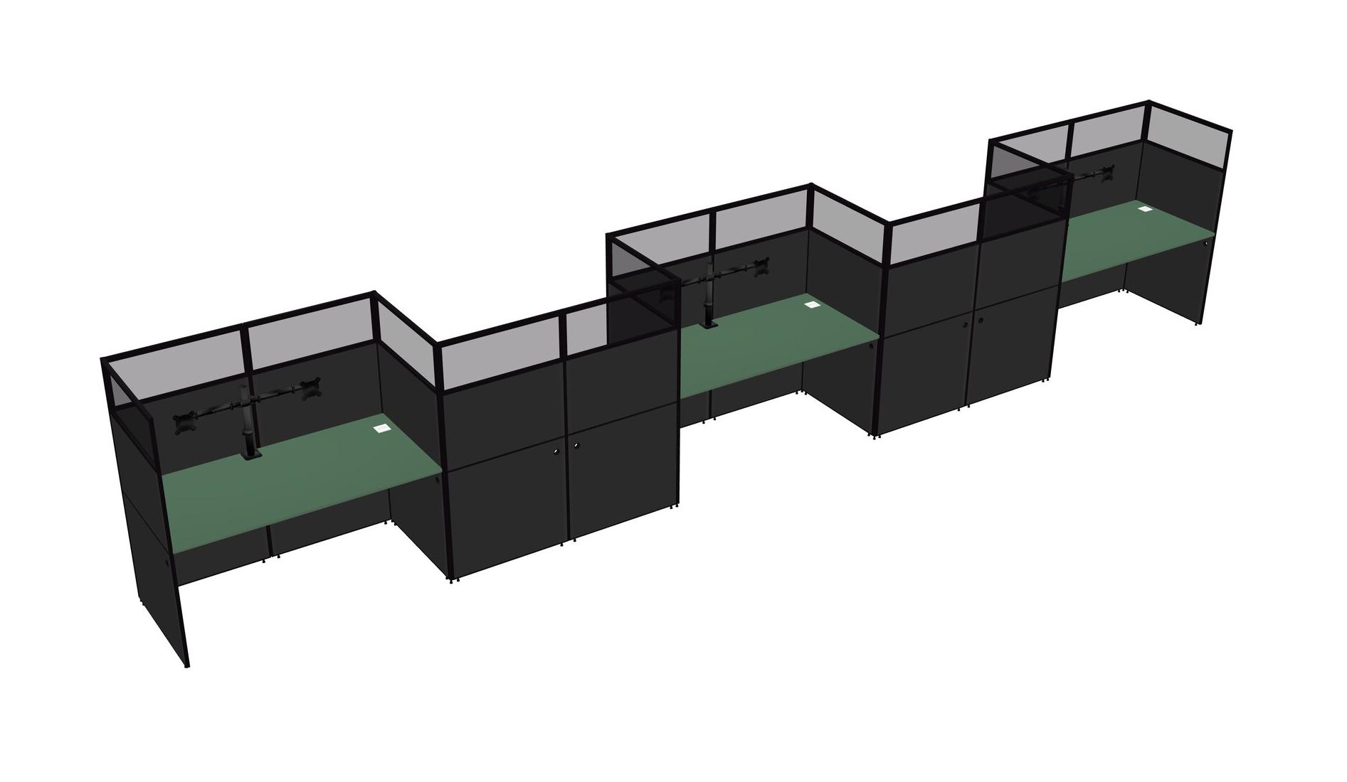Green Rectangular Cubicle Workstations For 5 - Zigzag Formation