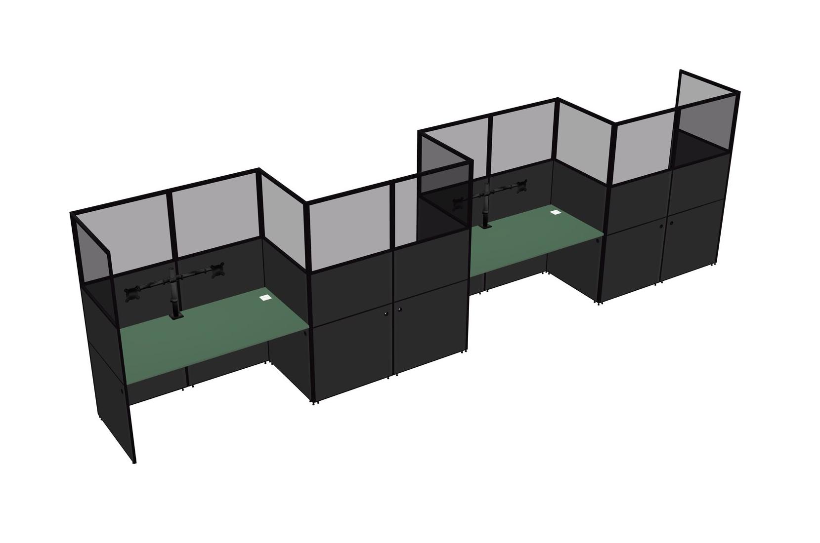 Green Rectangular Cubicle Workstations For 4 - Zigzag Formation